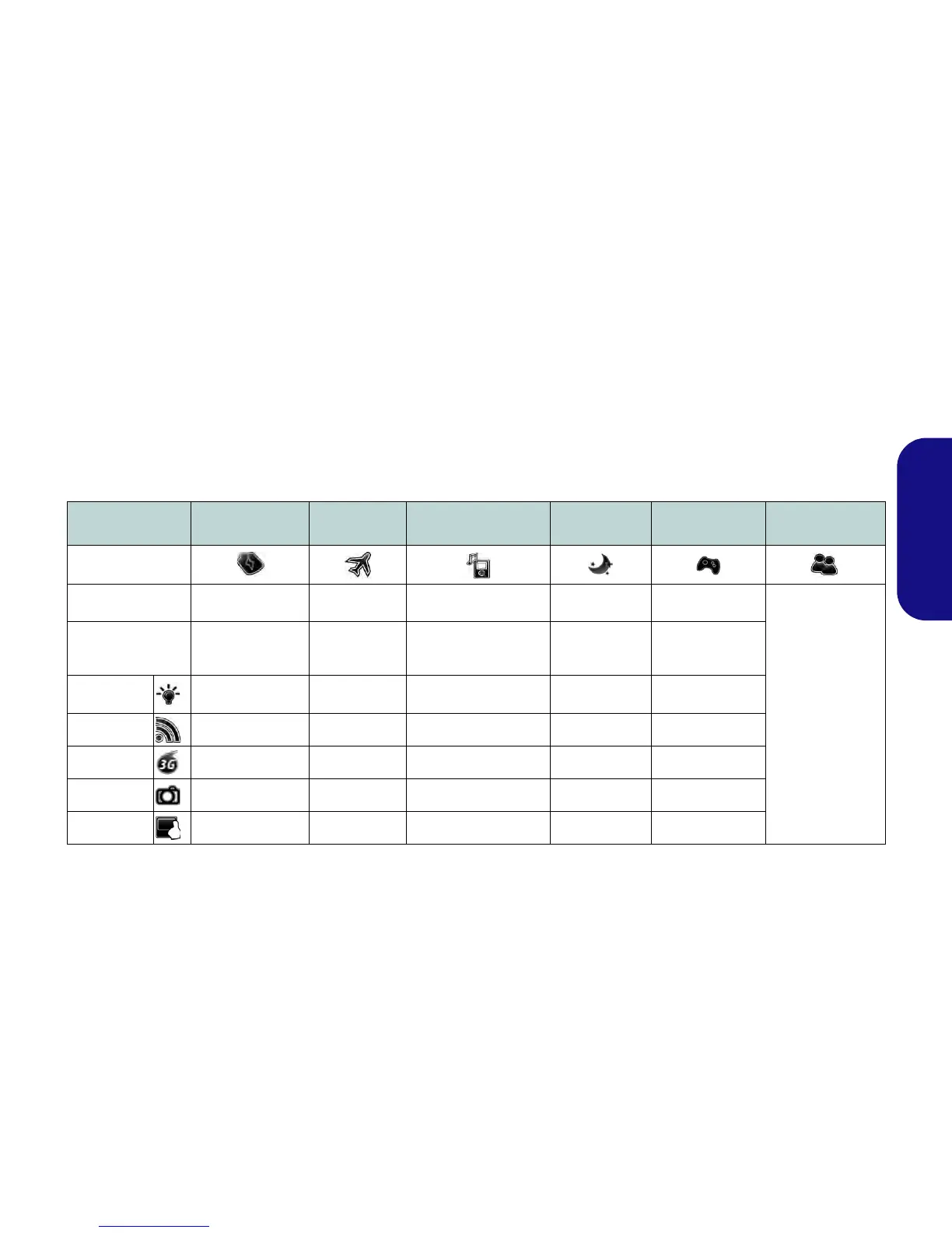 Energiemodus wirkt sich auf den Stromstatus der Module (z. B. WLAN, Bluetooth, 3G oder Kamera), die Bildschir-