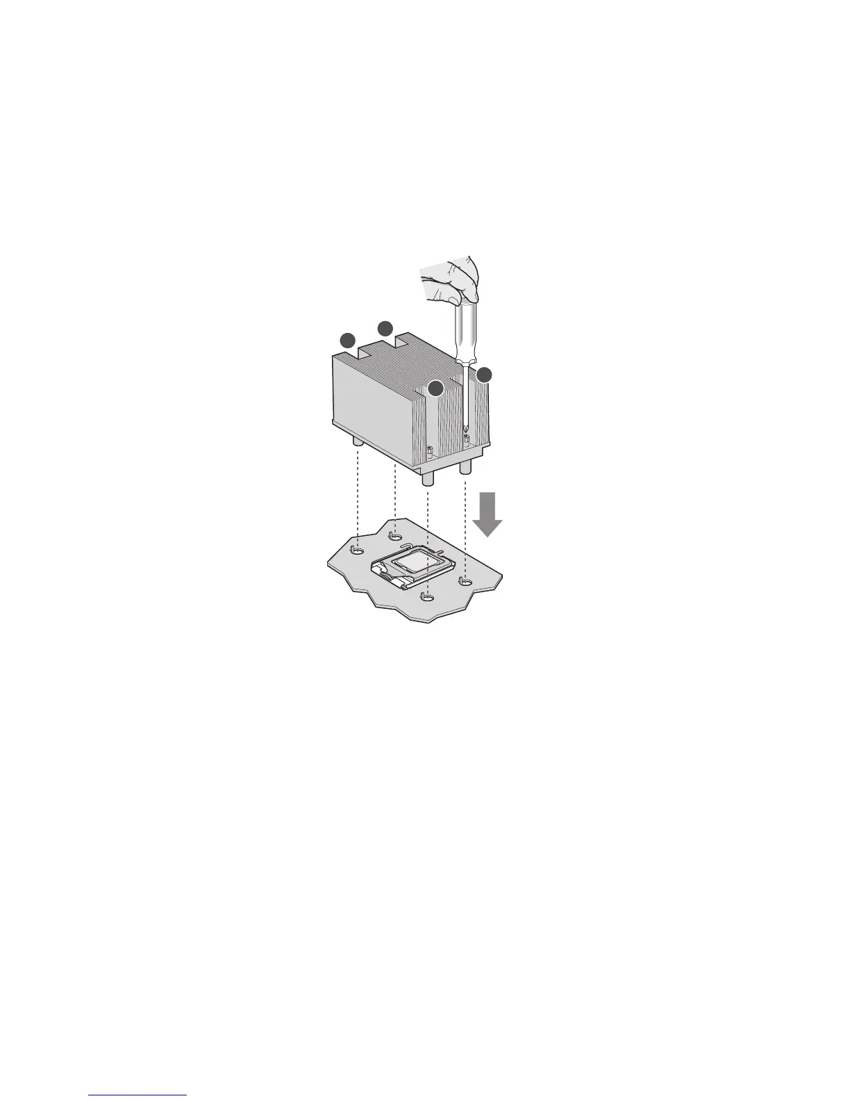 1. Set the heat sink over the processor, lining up the four captive screws with the four posts