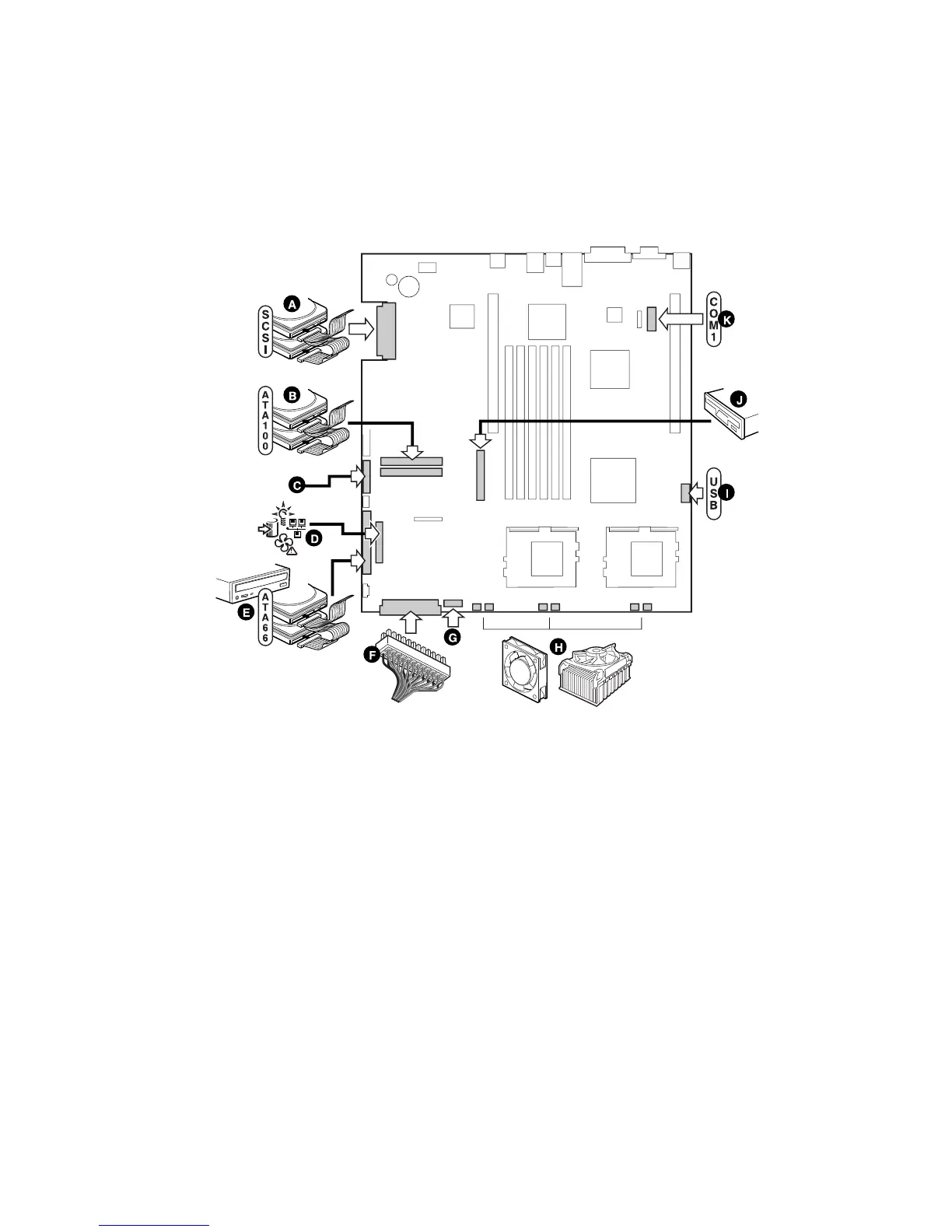 B. ATA-100 primary/secondary connectors (ATA server board only)