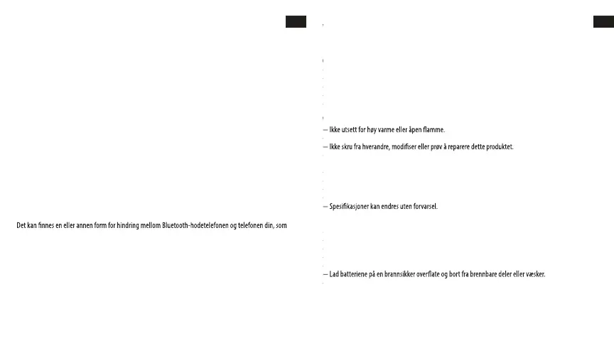 − Dette produktet er ikke vanntett, må ikke nedsenkes i vann.