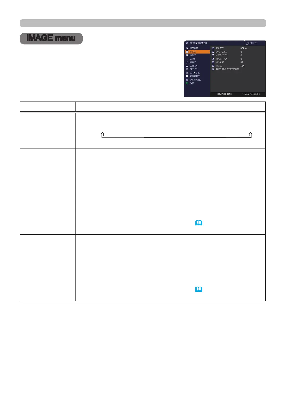 )URPWKH,0$*(PHQXLWHPVVKRZQLQWKHWDEOH