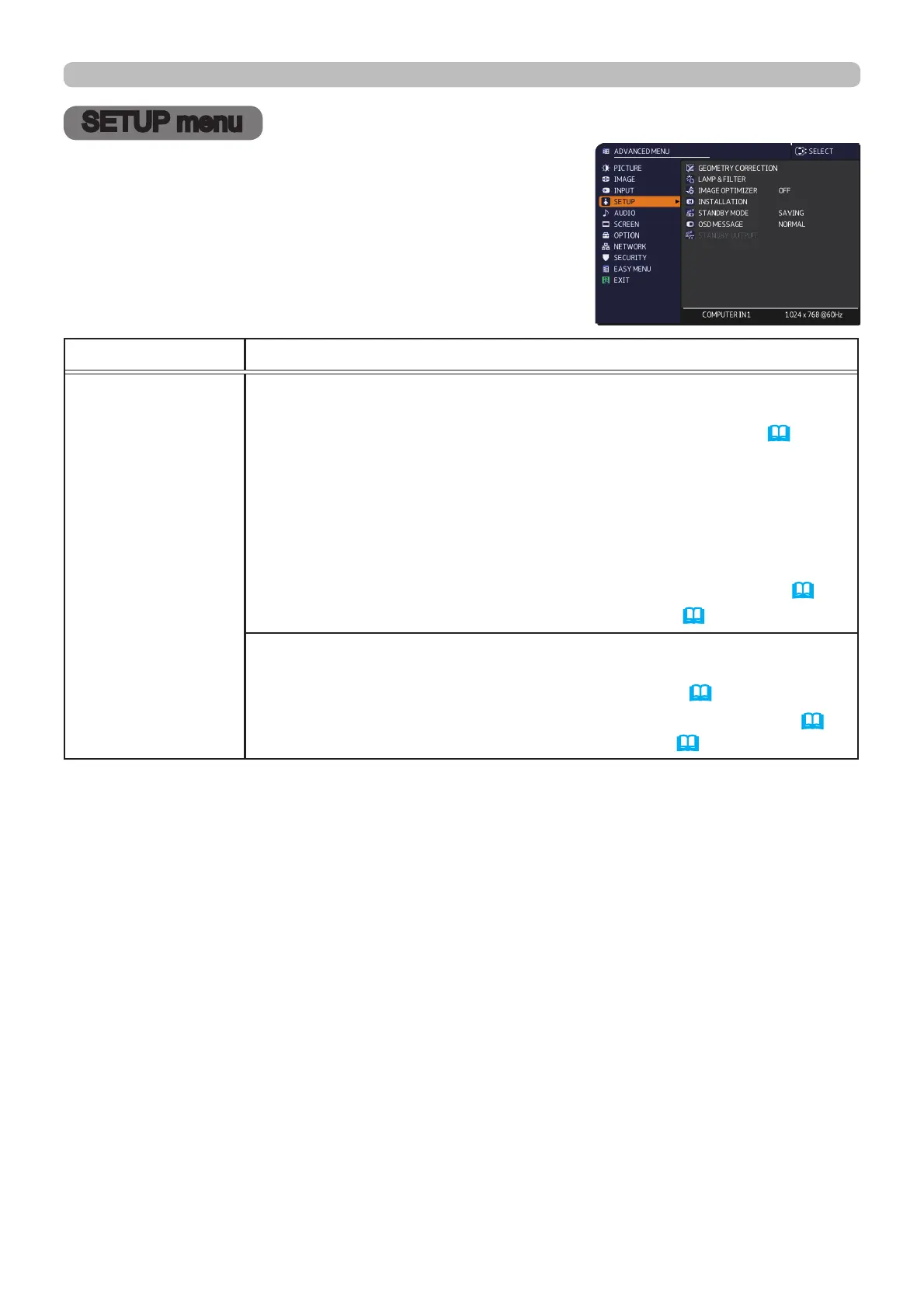 SETUP menu