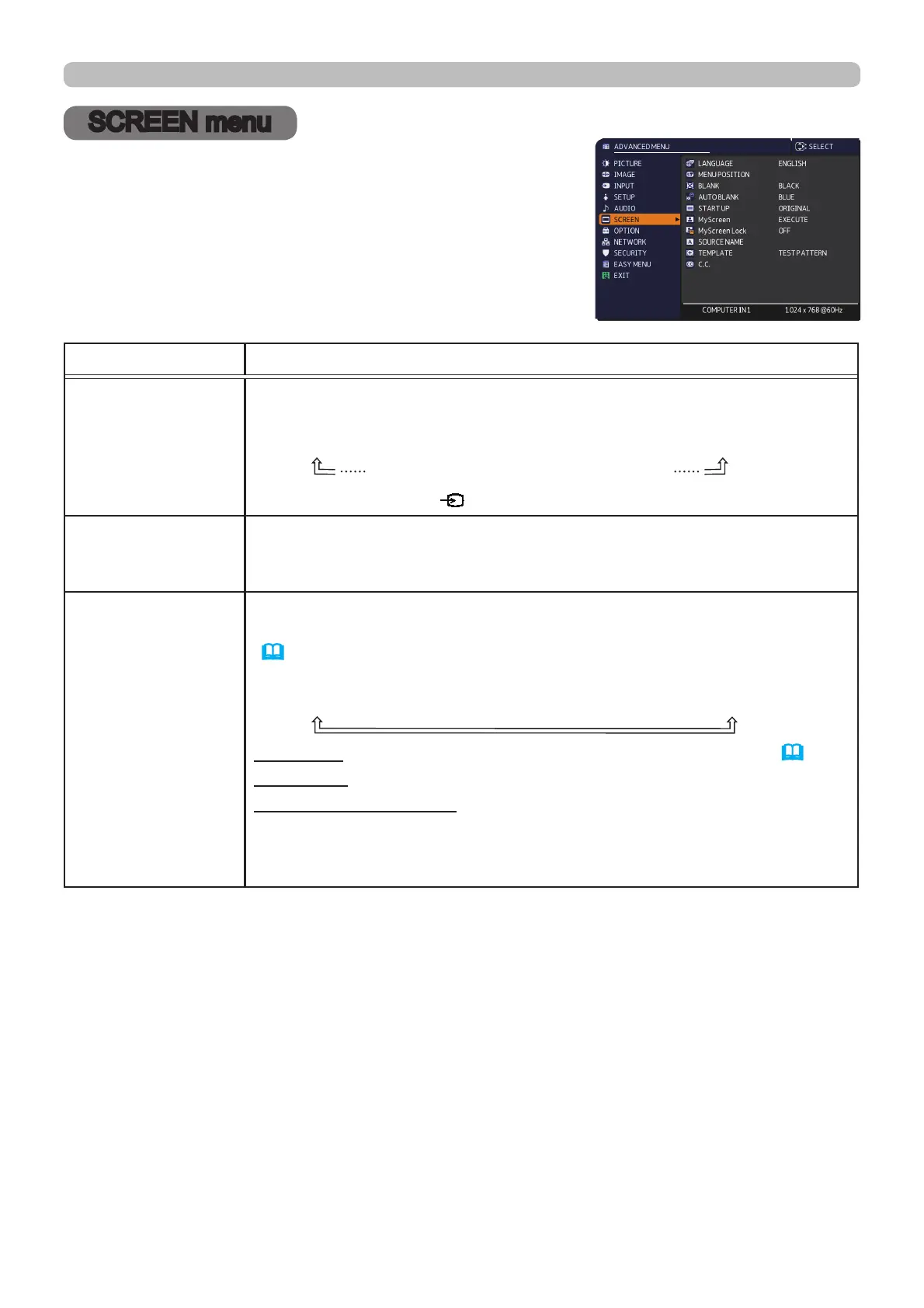 SCREEN menu