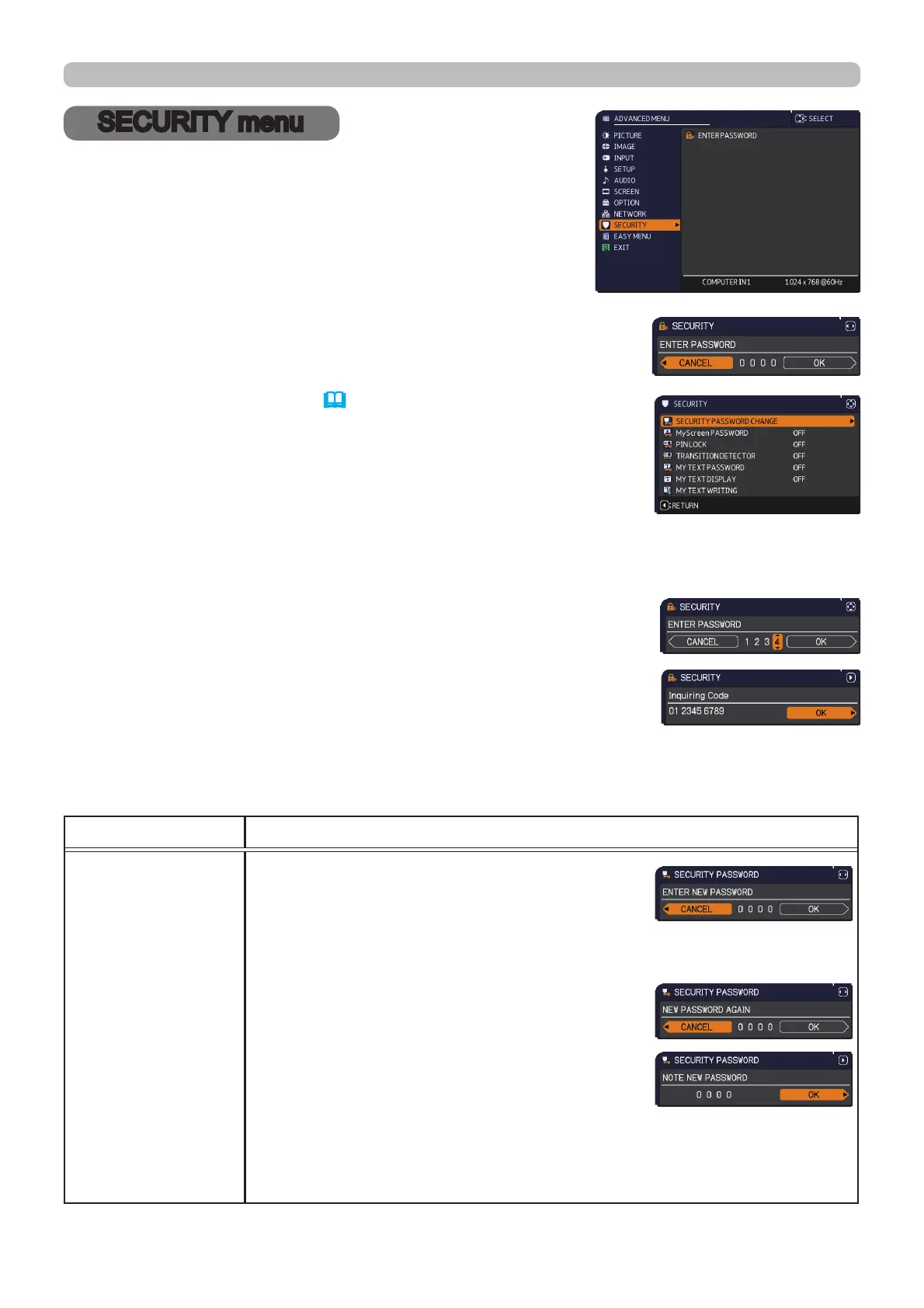 SECURITY menu