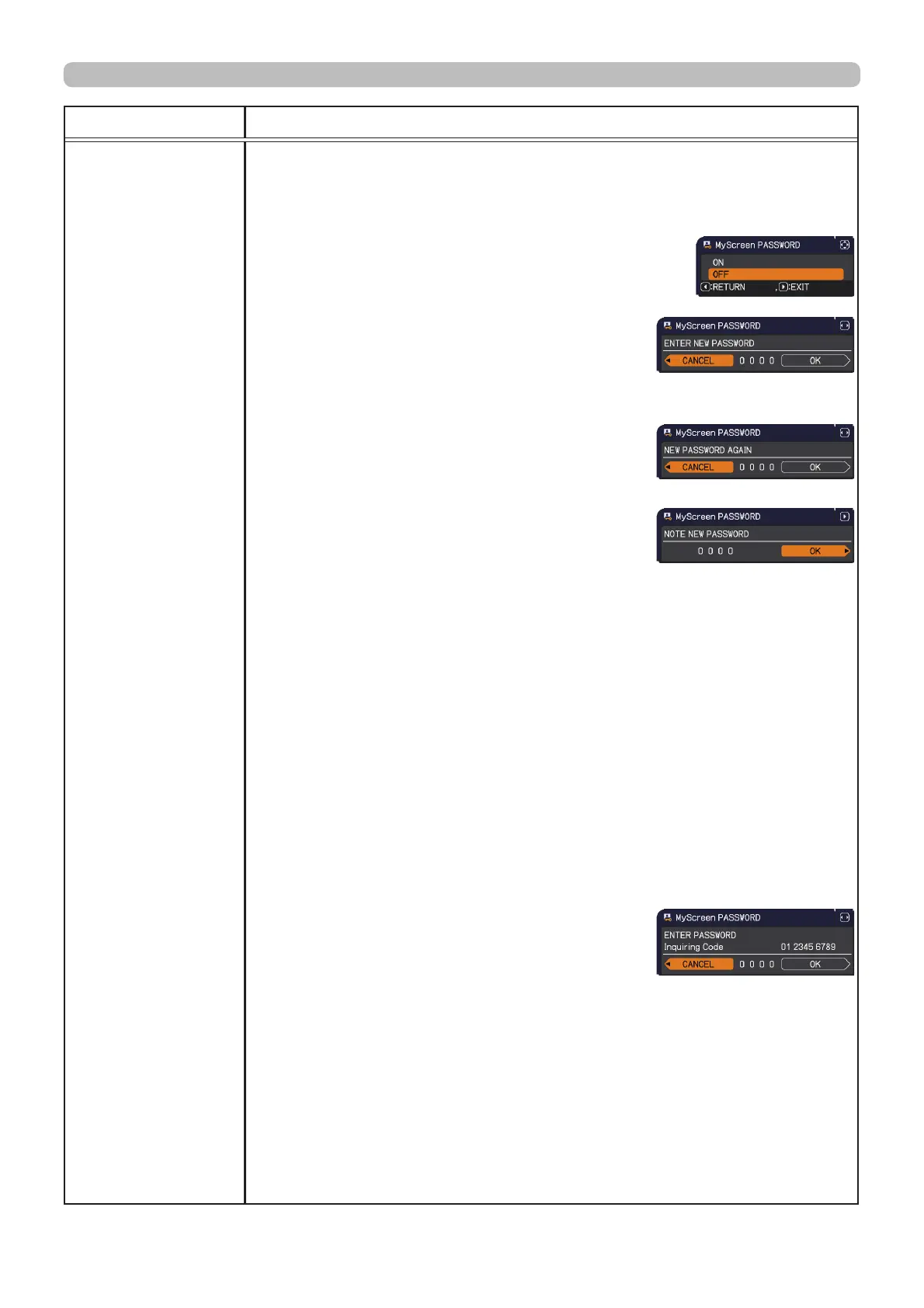 2 Turning off the MyScreen PASSWORD