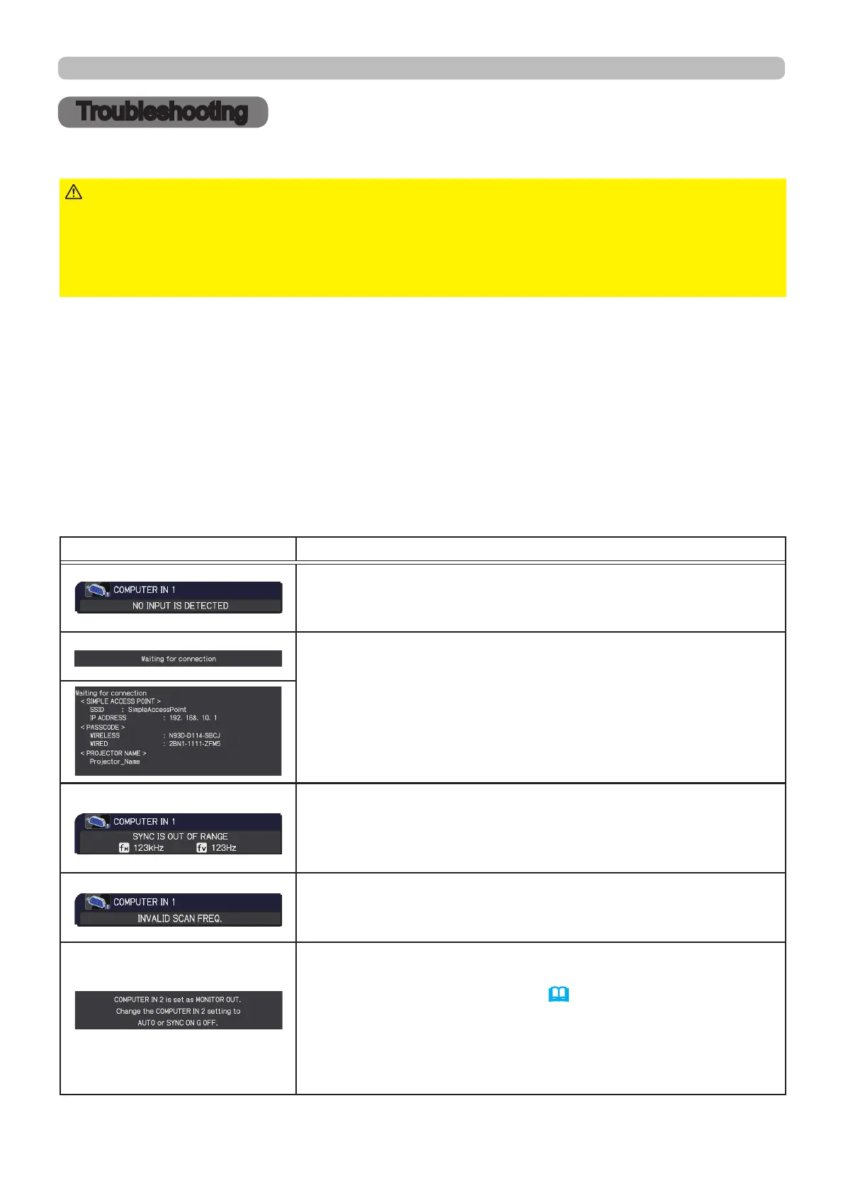 2WKHUZLVHLIDSUREOHPRFFXUVZLWKWKHSURMHFWRUWKHIROORZLQJFKHFNVDQGPHDVXUHVDUH