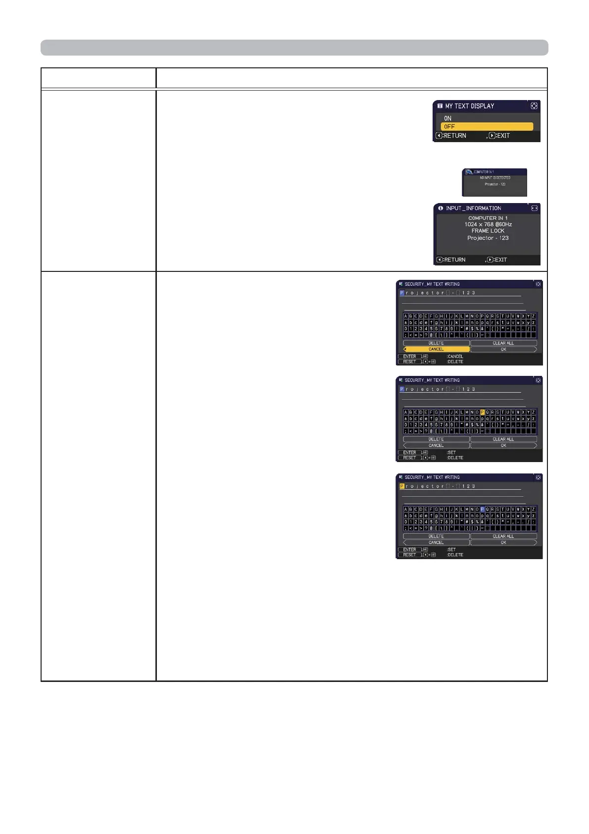 SECURITY menu