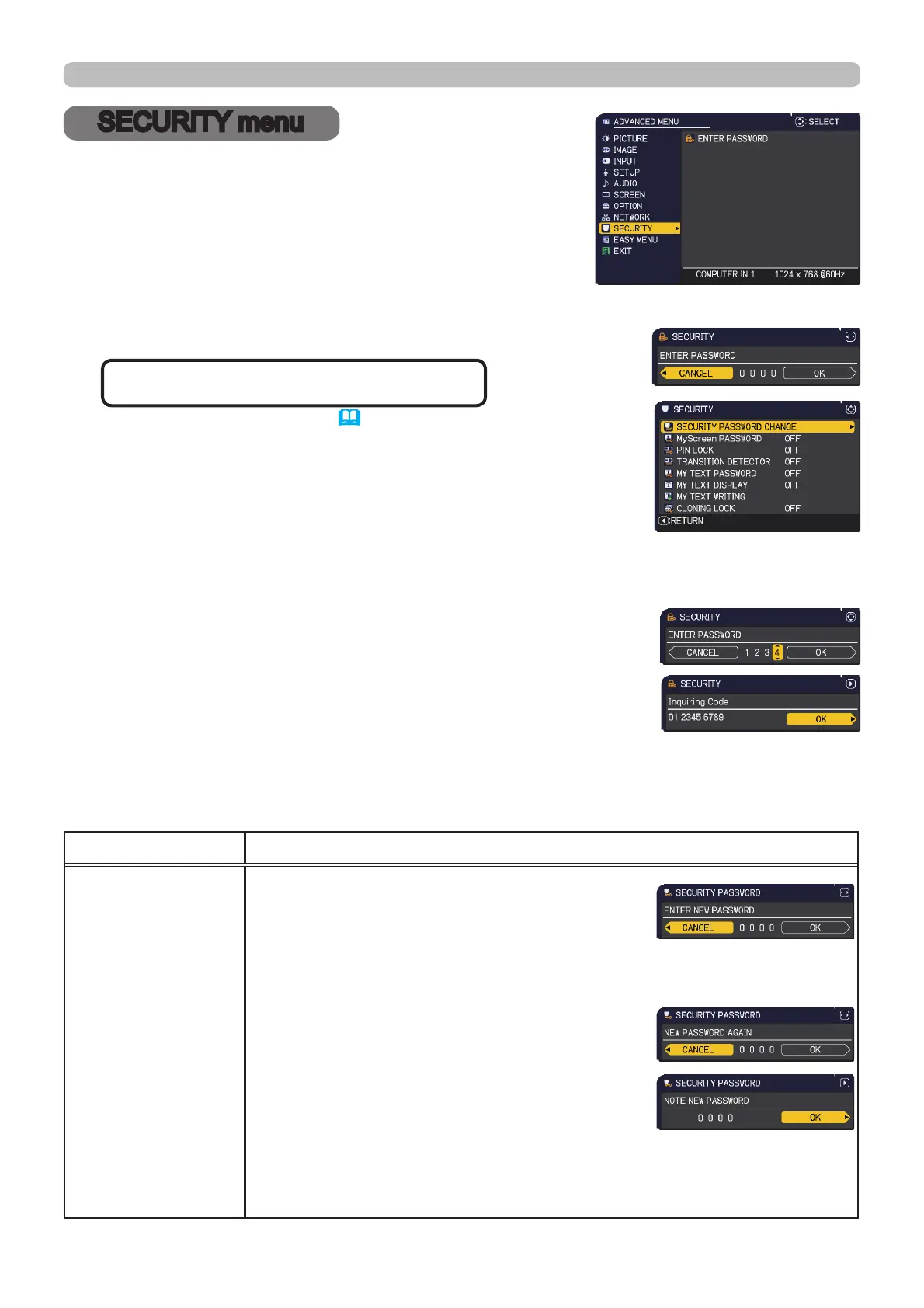 SECURITY menu