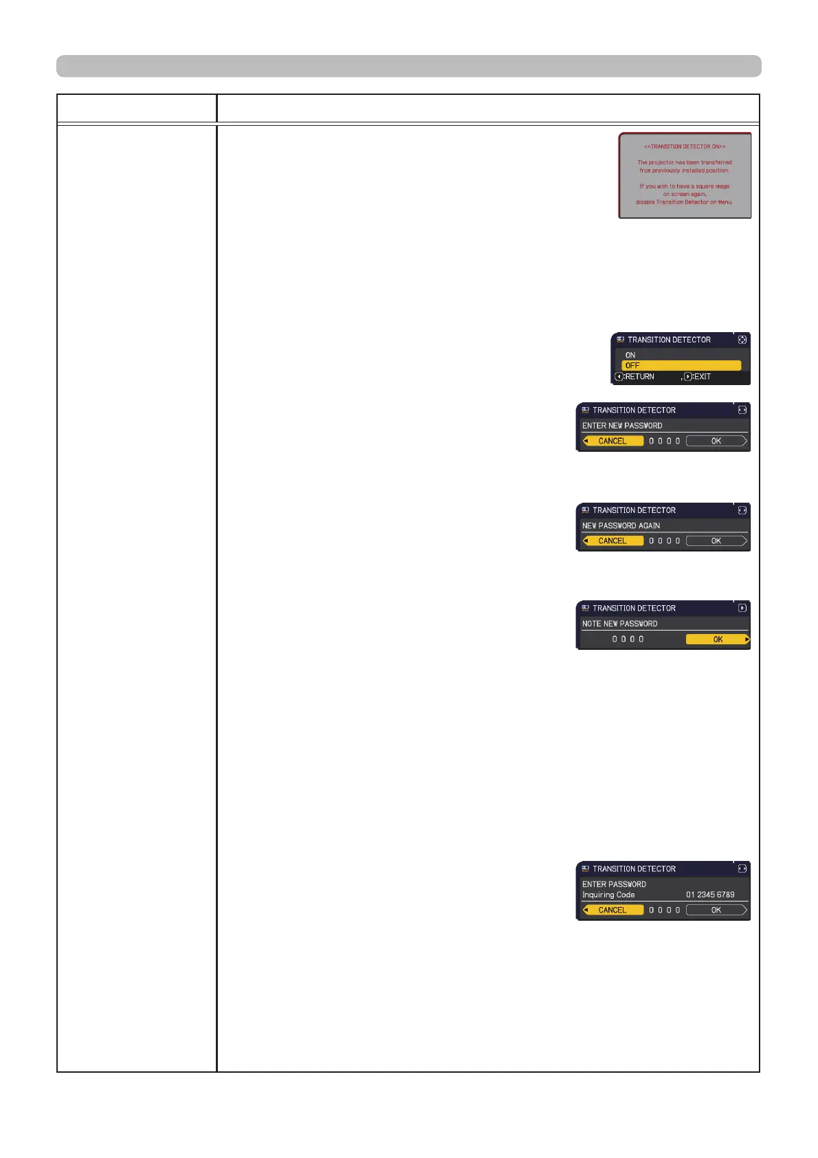 2 Turning off the TRANSITION DETECTOR