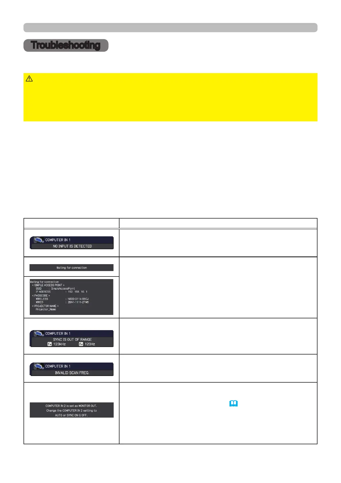 2WKHUZLVHLIDSUREOHPRFFXUVZLWKWKHSURMHFWRUWKHIROORZLQJFKHFNVDQGPHDVXUHVDUH