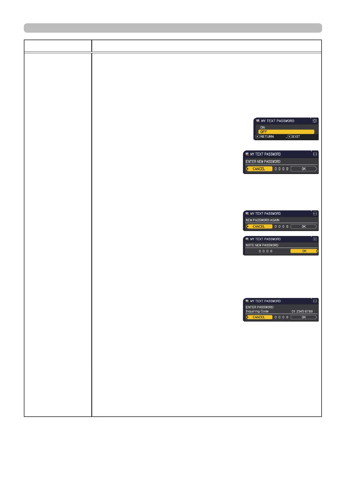 2 Turning off the MY TEXT PASSWORD