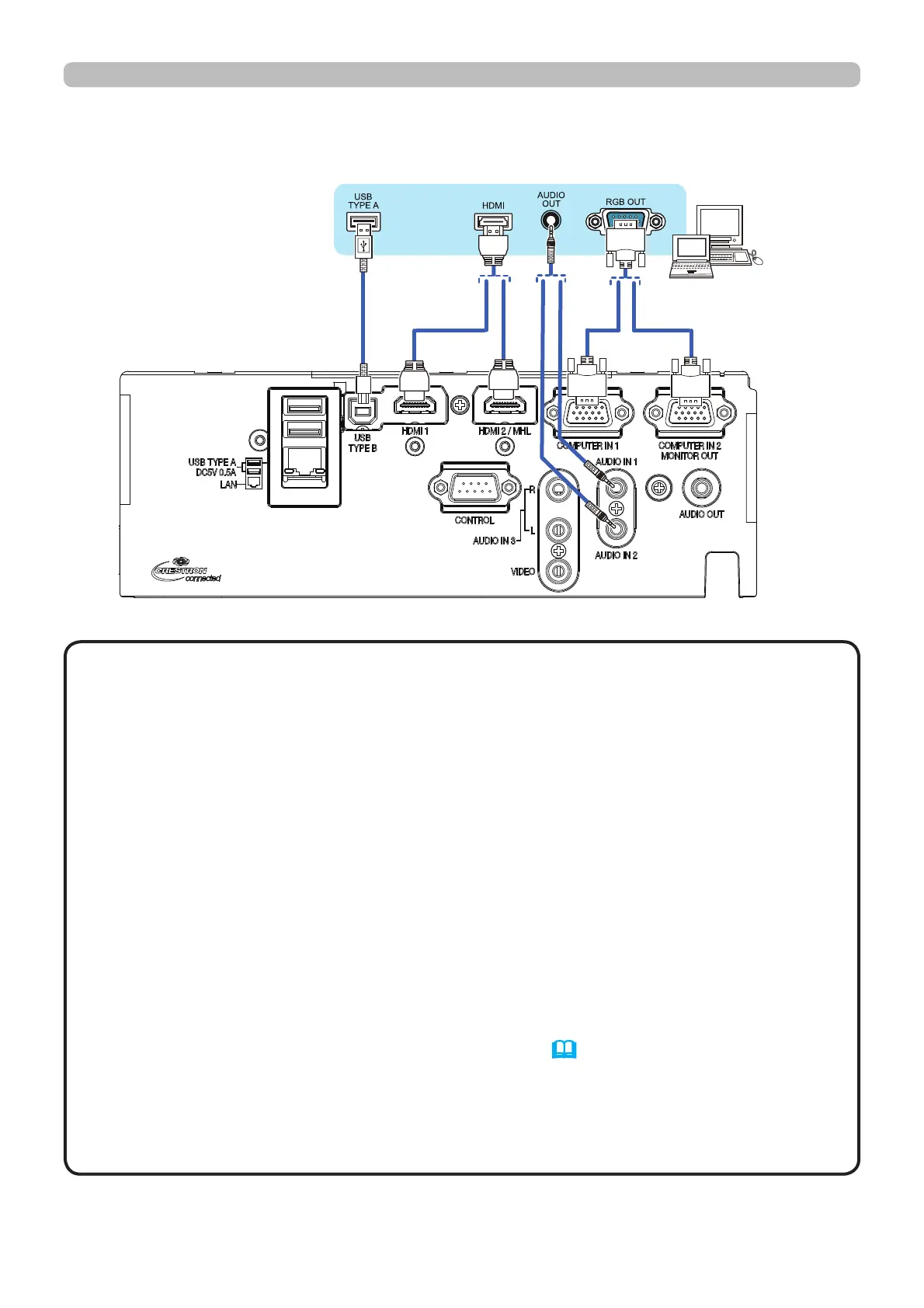 %HIRUHFRQQHFWLQJWKHSURMHFWRUWRDFRPSXWHUFRQVXOWWKHFRPSXWHU¶V