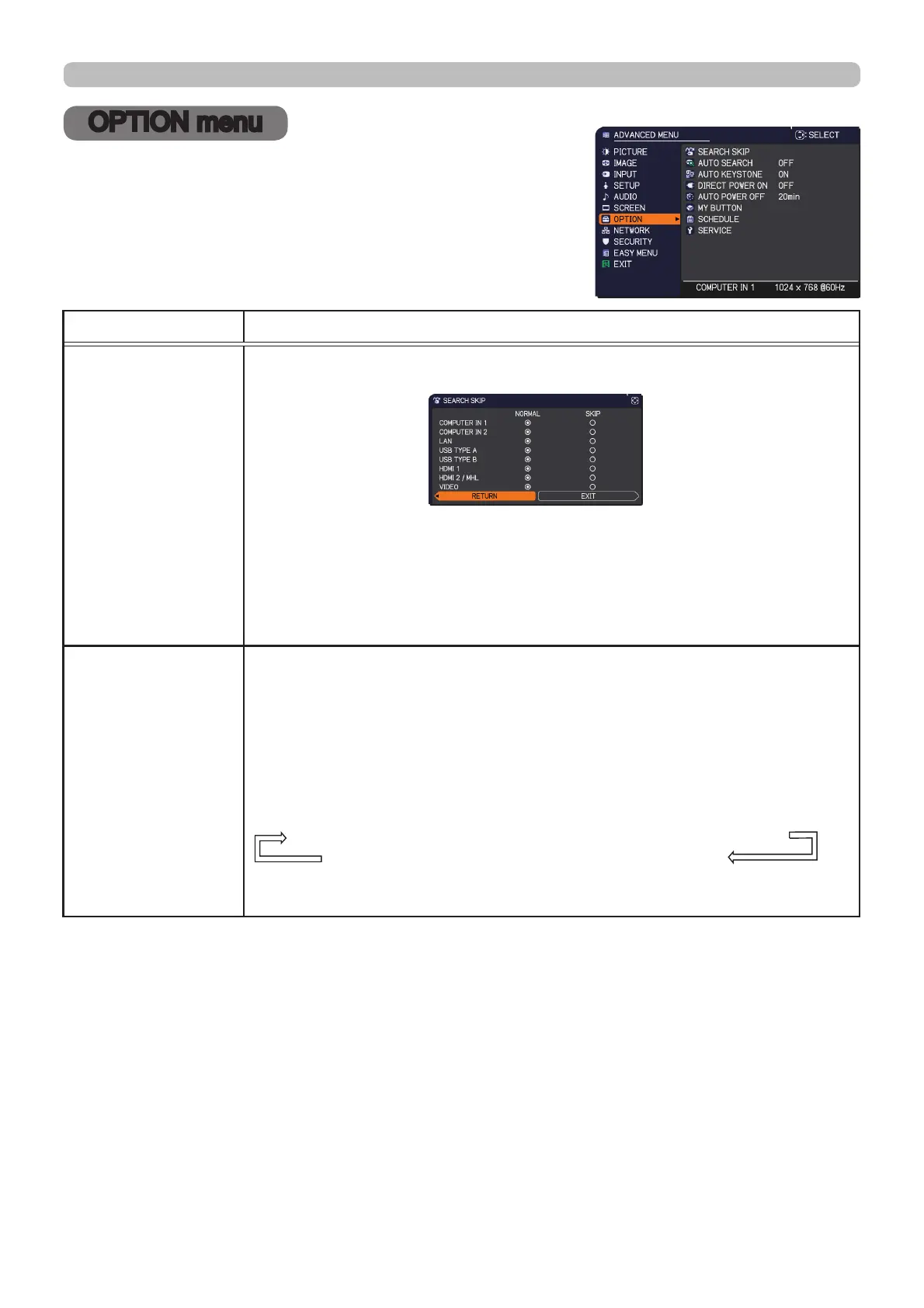 OPTION menu
