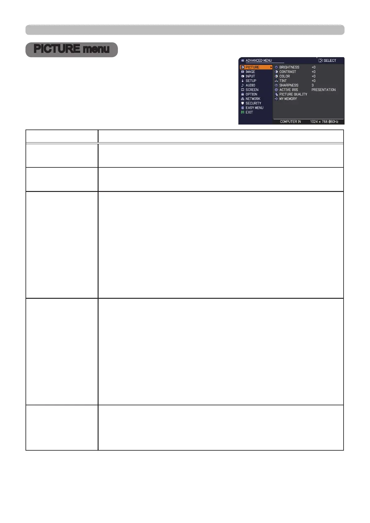 )URPWKH3,&785(PHQXLWHPVVKRZQLQWKHWDEOH