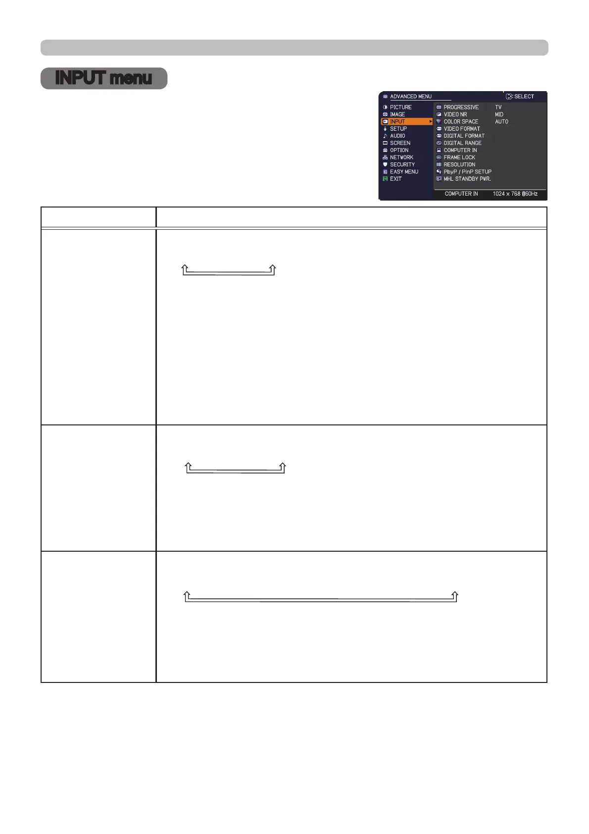 )URPWKH,1387PHQXLWHPVVKRZQLQWKHWDEOH