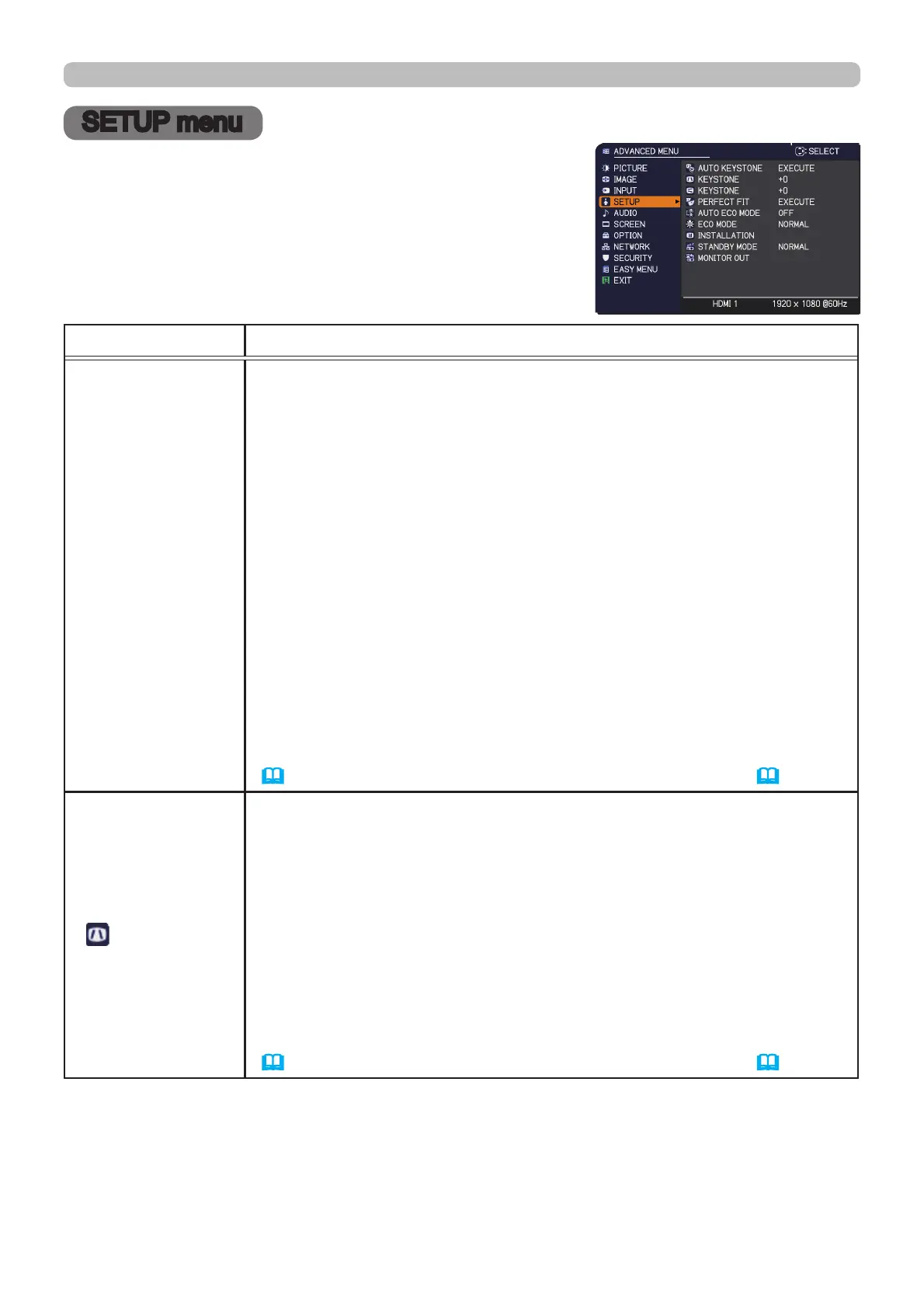 SETUP menu