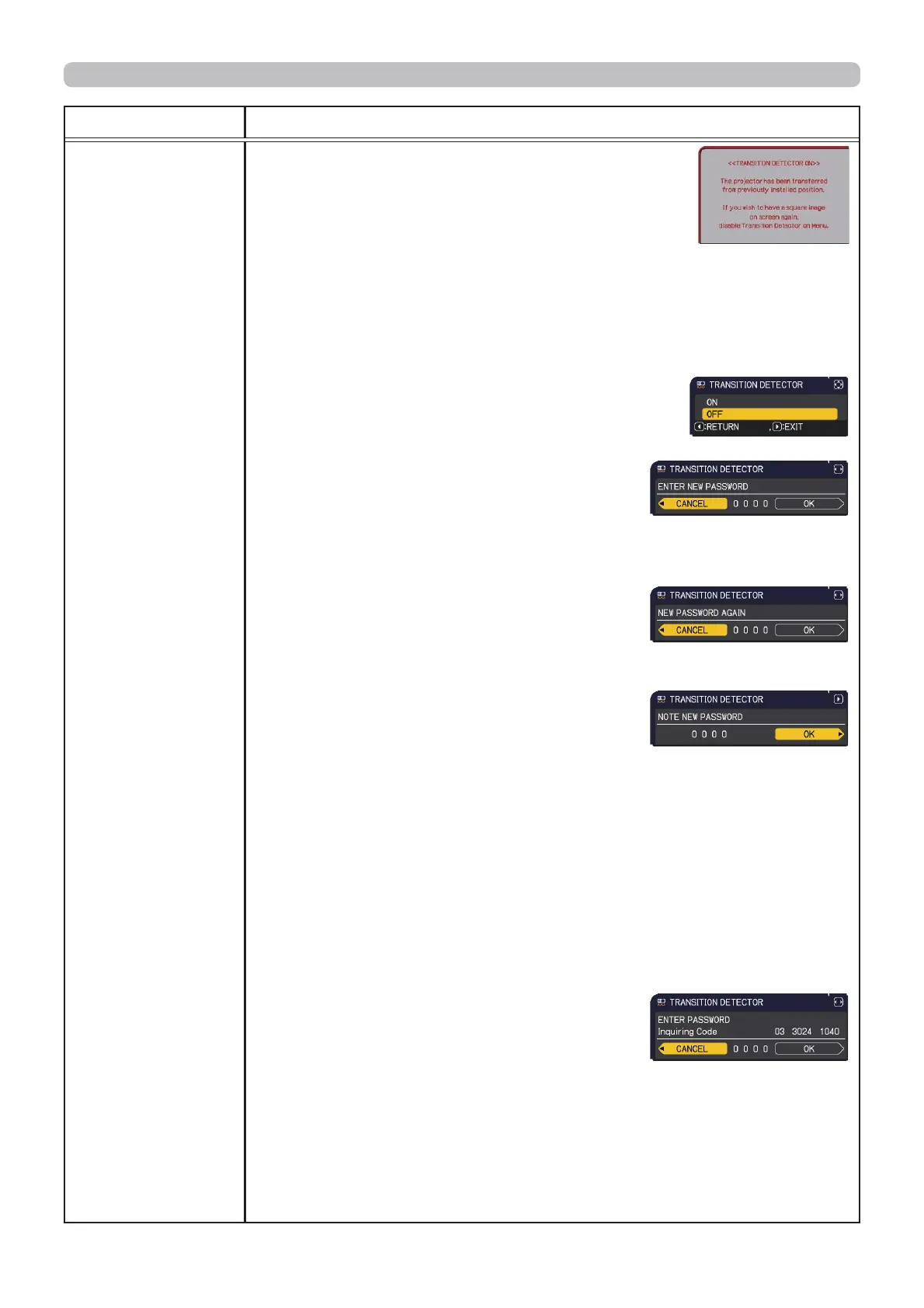 2 Turning off the TRANSITION DETECTOR