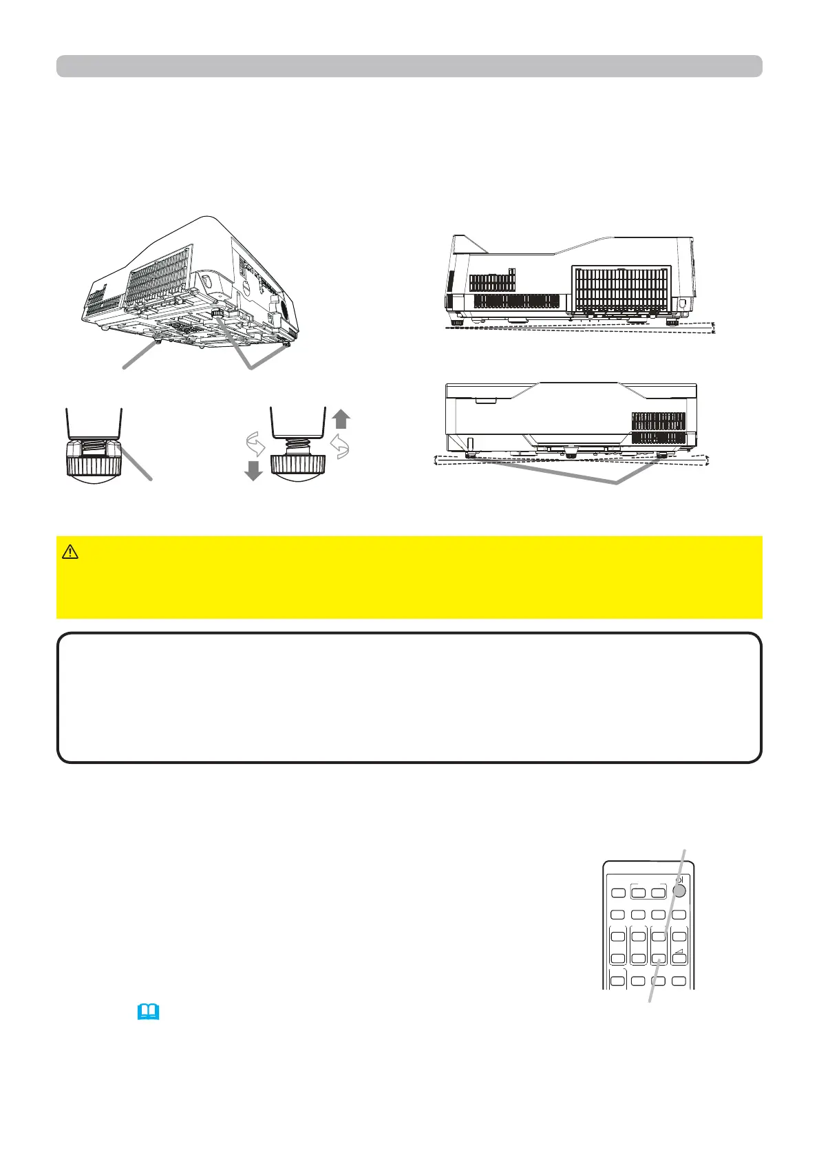 7KHSURMHFWRUKDV5HDUIHHWIRUDGMXVWLQJWKHKRUL]RQWDOSRVLWLRQDQGLQFOLQDWLRQ