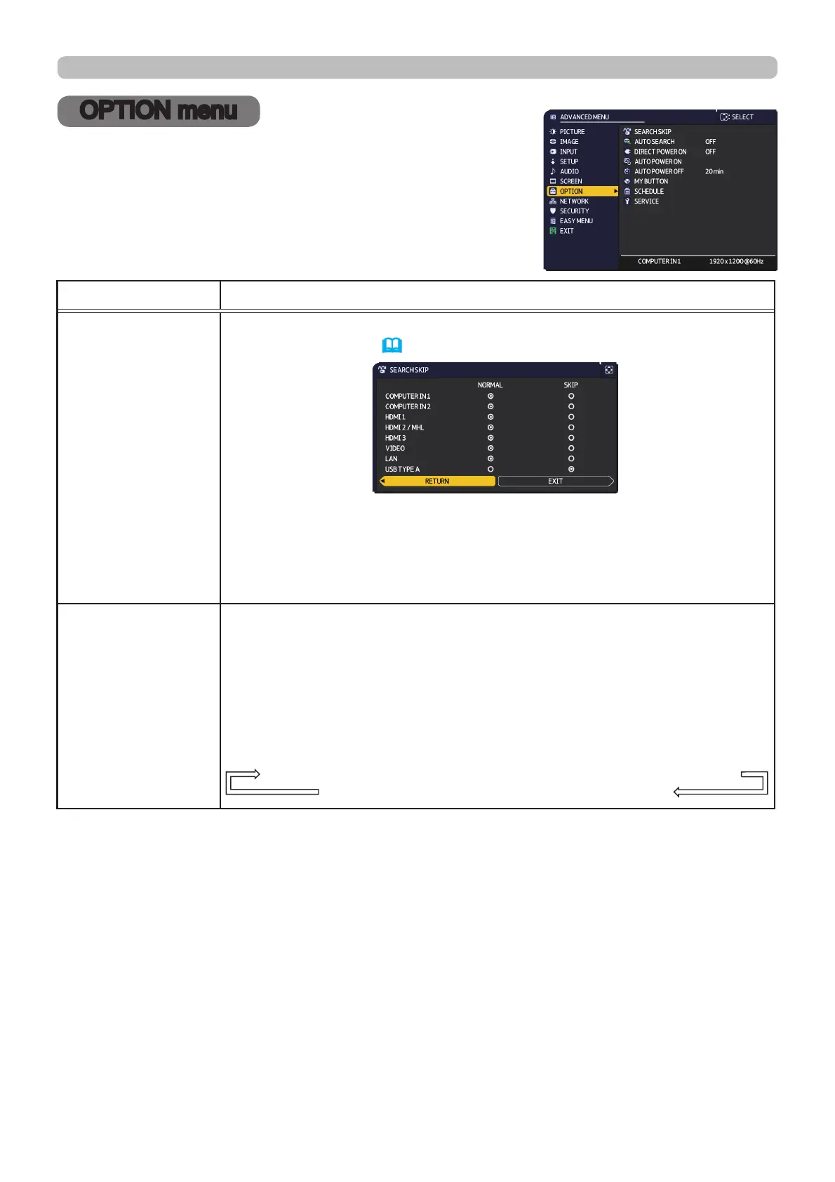 OPTION menu