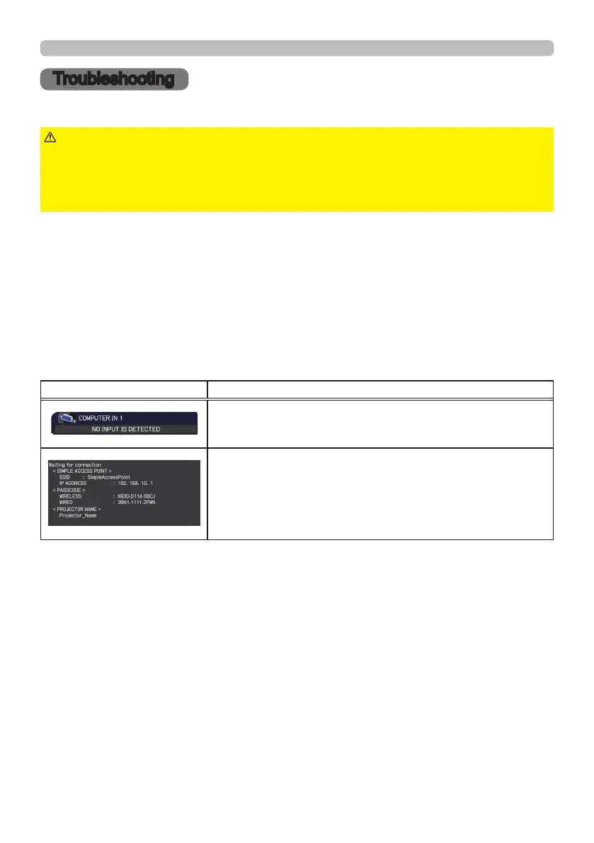 Otherwise if a problem occurs with the projector, the following checks and measures are