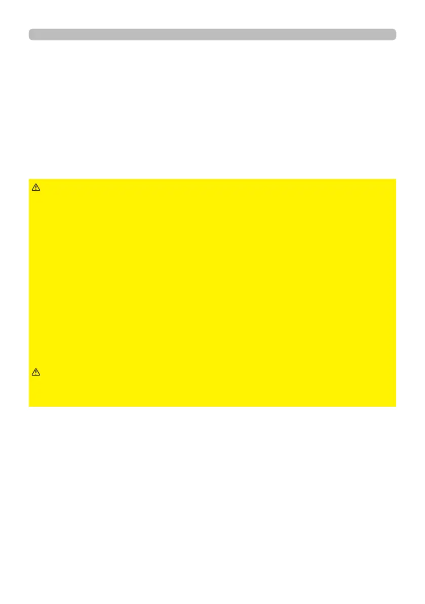 • Neither disassemble nor modify the projector and the accessories.
