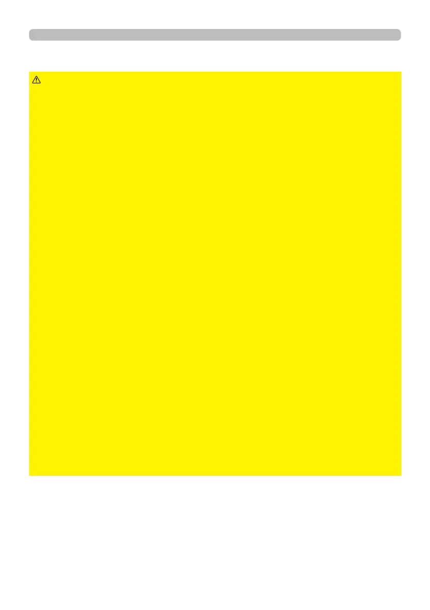 • If liquids or foreign object should enter the projector, immediately turn o the