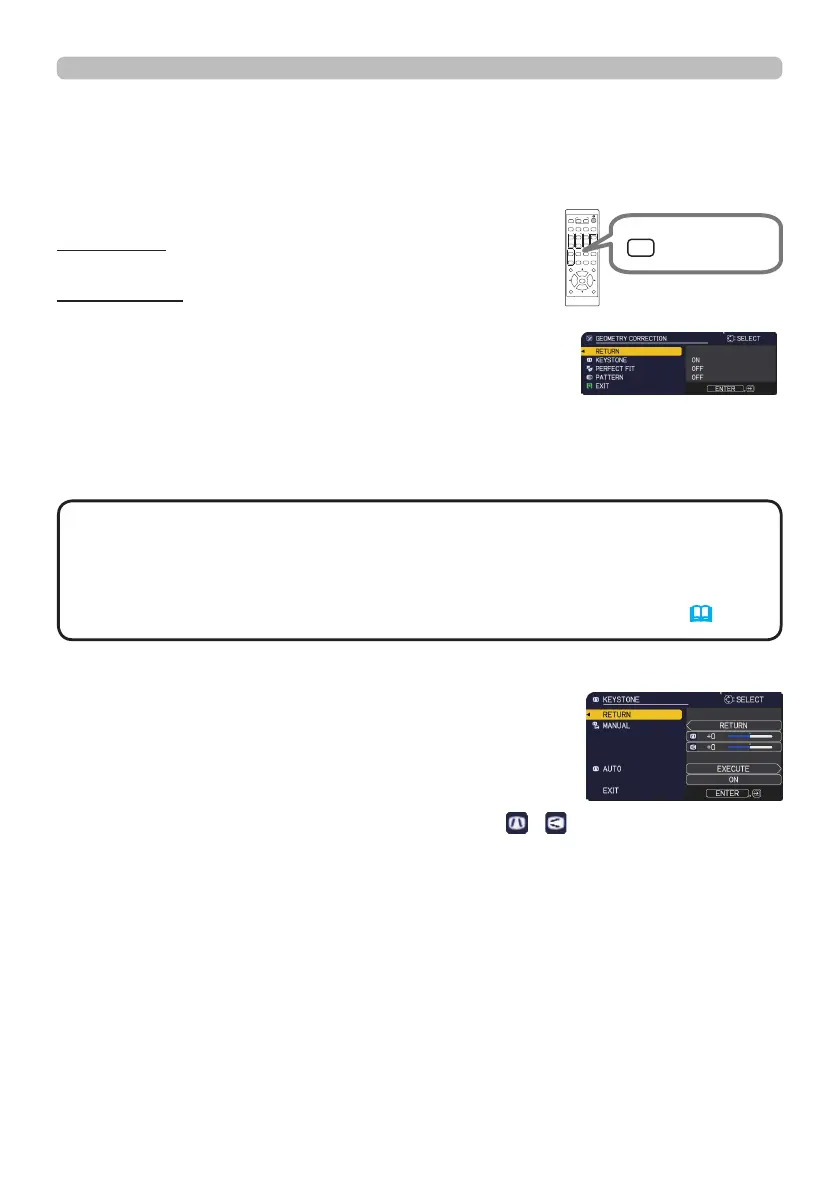 GEOMETRY CORRECTION menu, and point at one of the items with the ▲/▼
