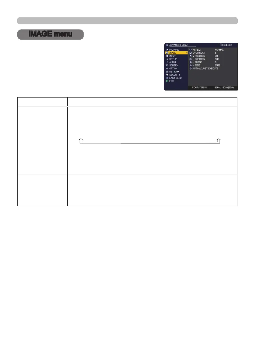 Using the ◄/► buttons adjusts the over-scan ratio.