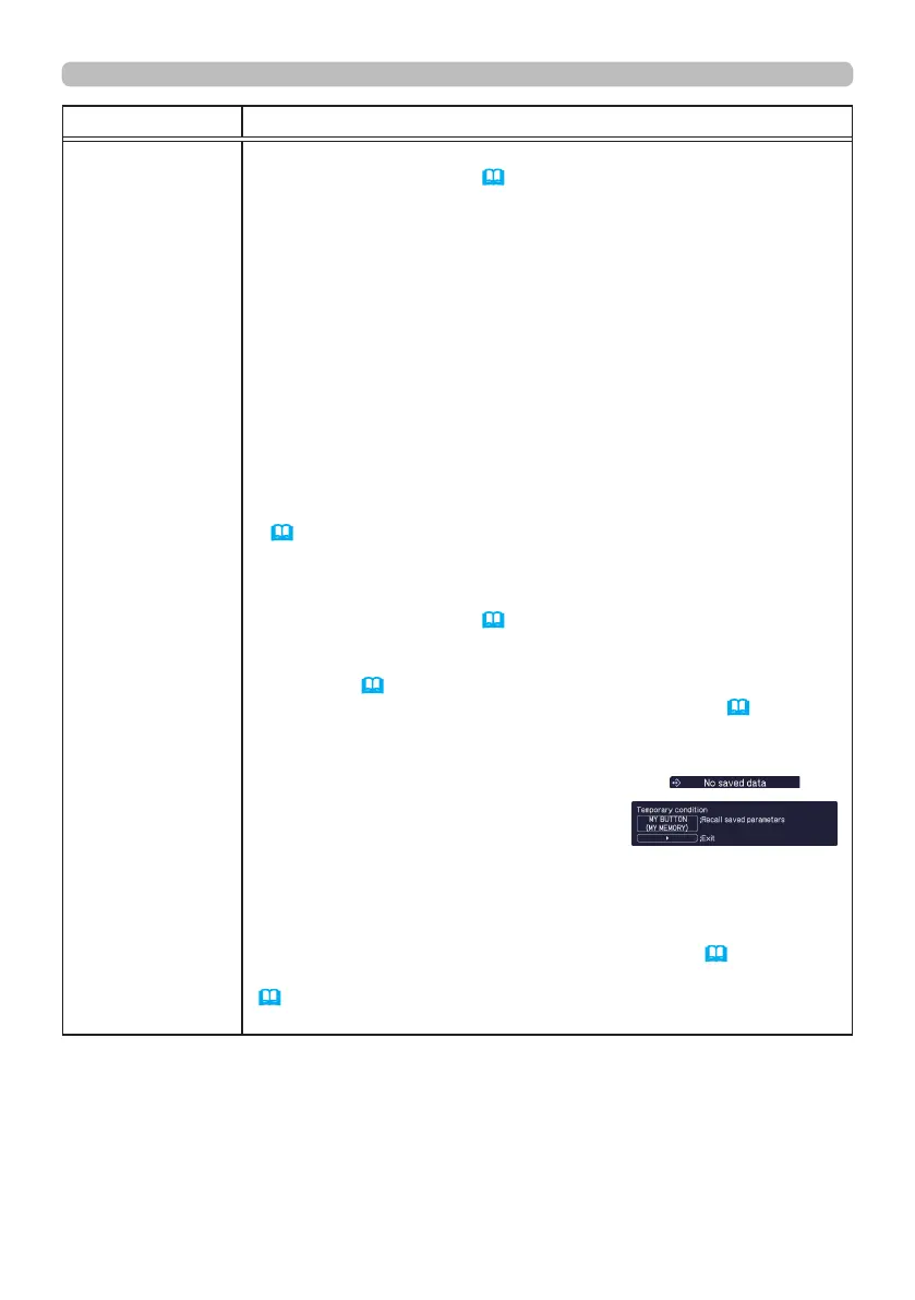 • MY MEMORY: Loads one of adjustment data stored (
