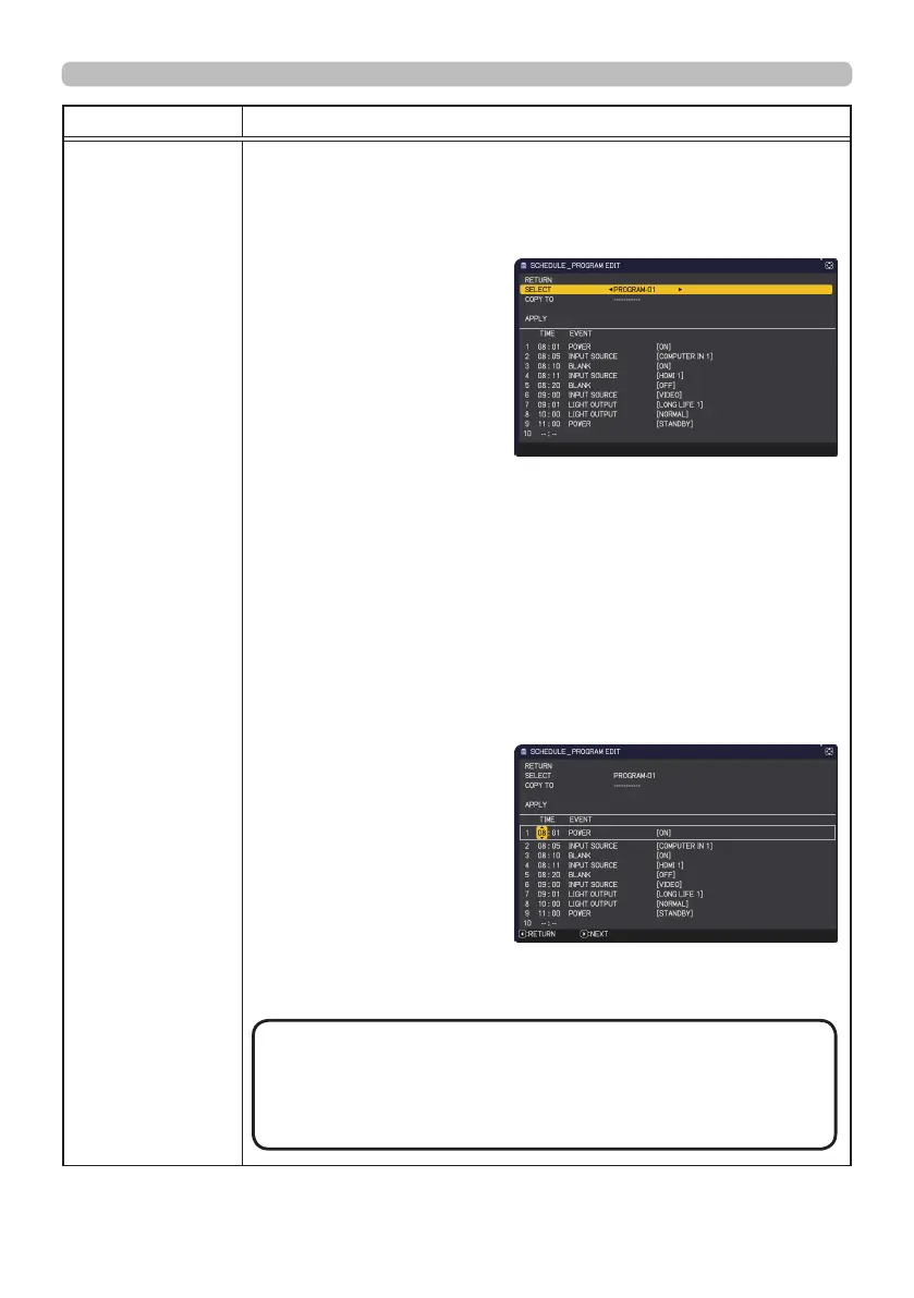 SAVING, SCHEDULE function (Ex:POWER-ON) at STANDBY