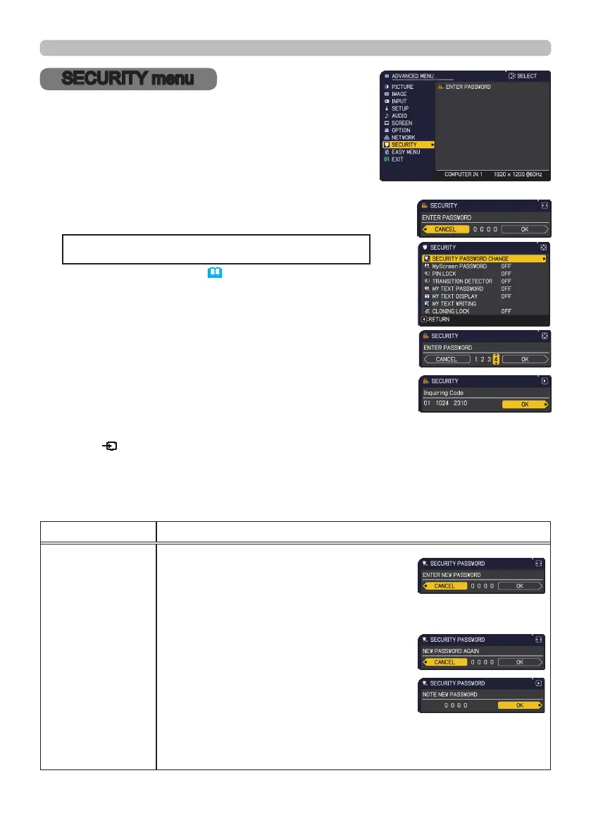 (1) Use the ▲/▼ buttons on the SECURITY menu