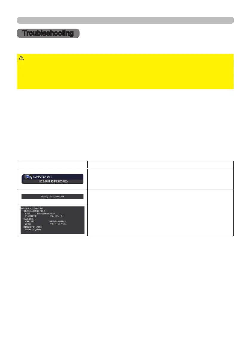 2WKHUZLVHLIDSUREOHPRFFXUVZLWKWKHSURMHFWRUWKHIROORZLQJFKHFNVDQGPHDVXUHVDUH