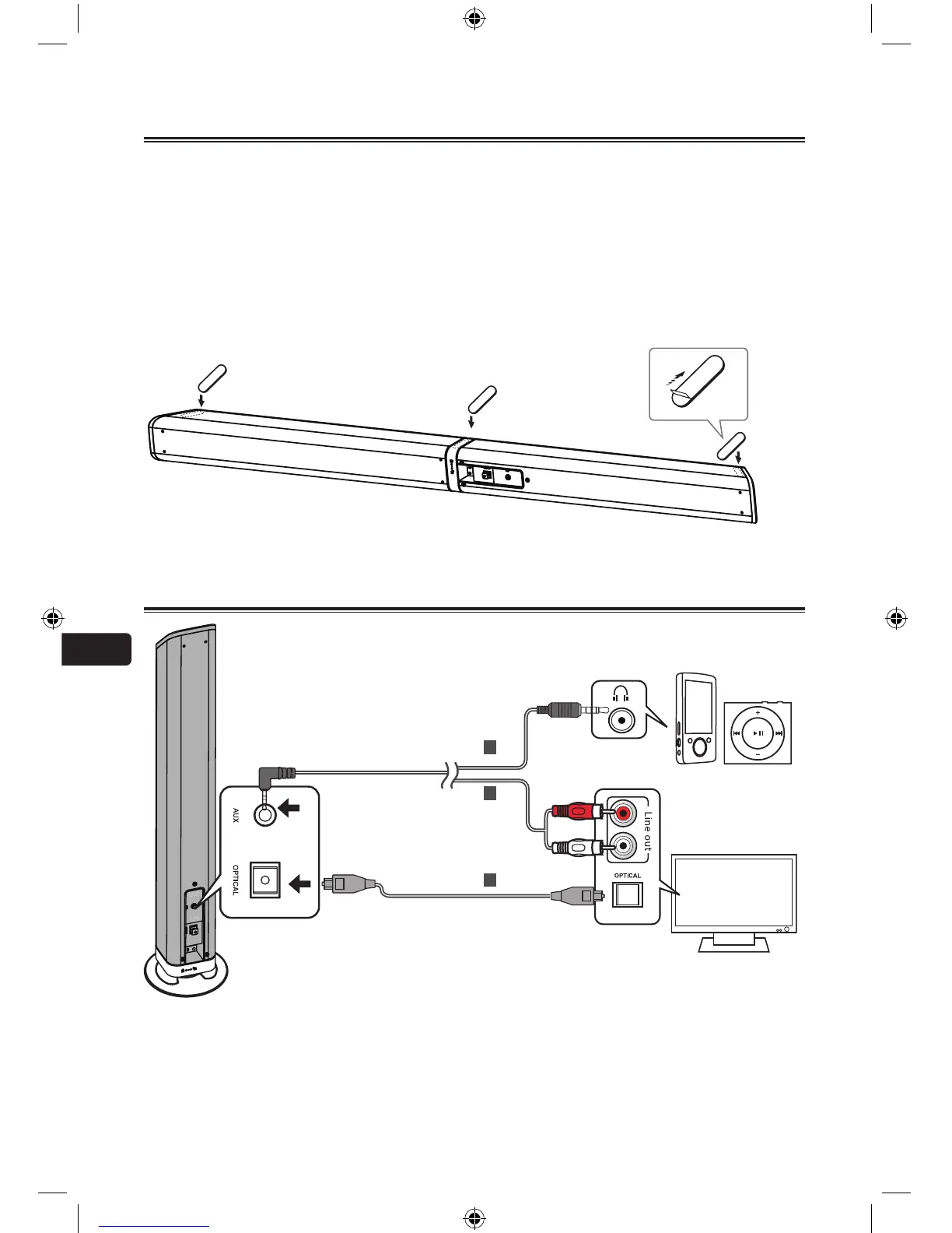 Aplique o pé de borracha na parte inferior da unidade como mostrado na