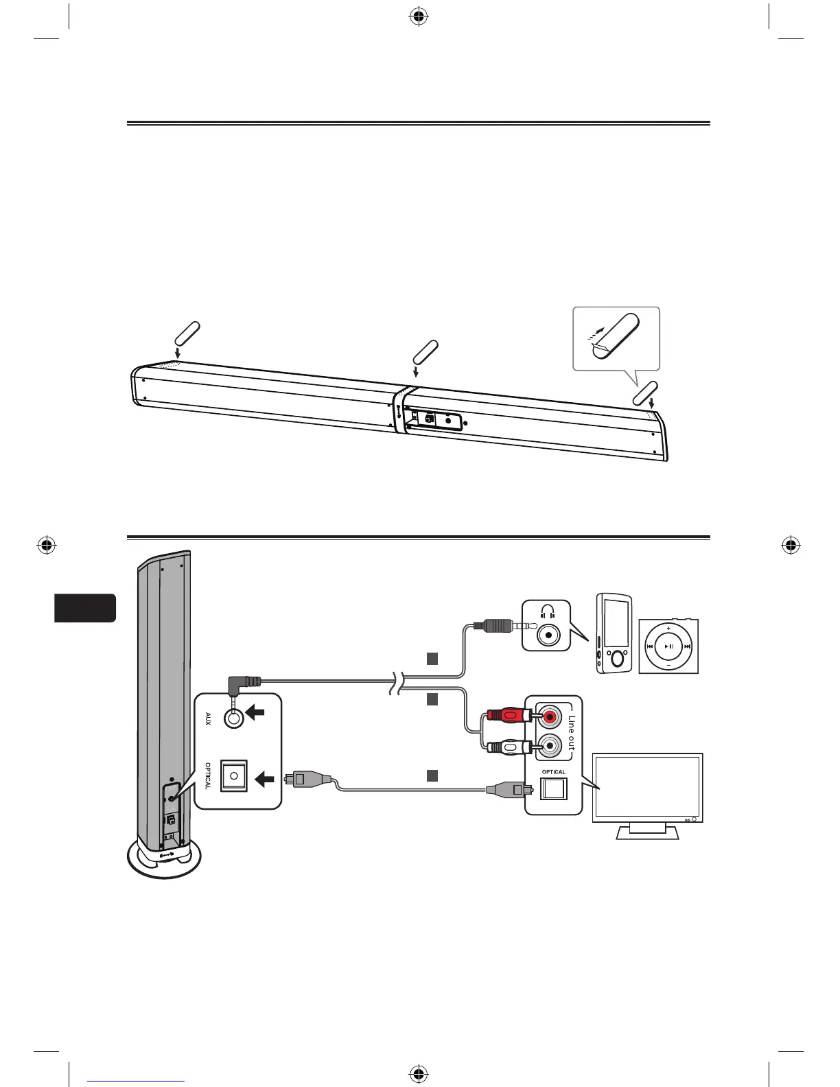 3. Kiinnitä kumijalat yksikön pohjaan alla olevassa kuvassa osoitetulla tavalla.
