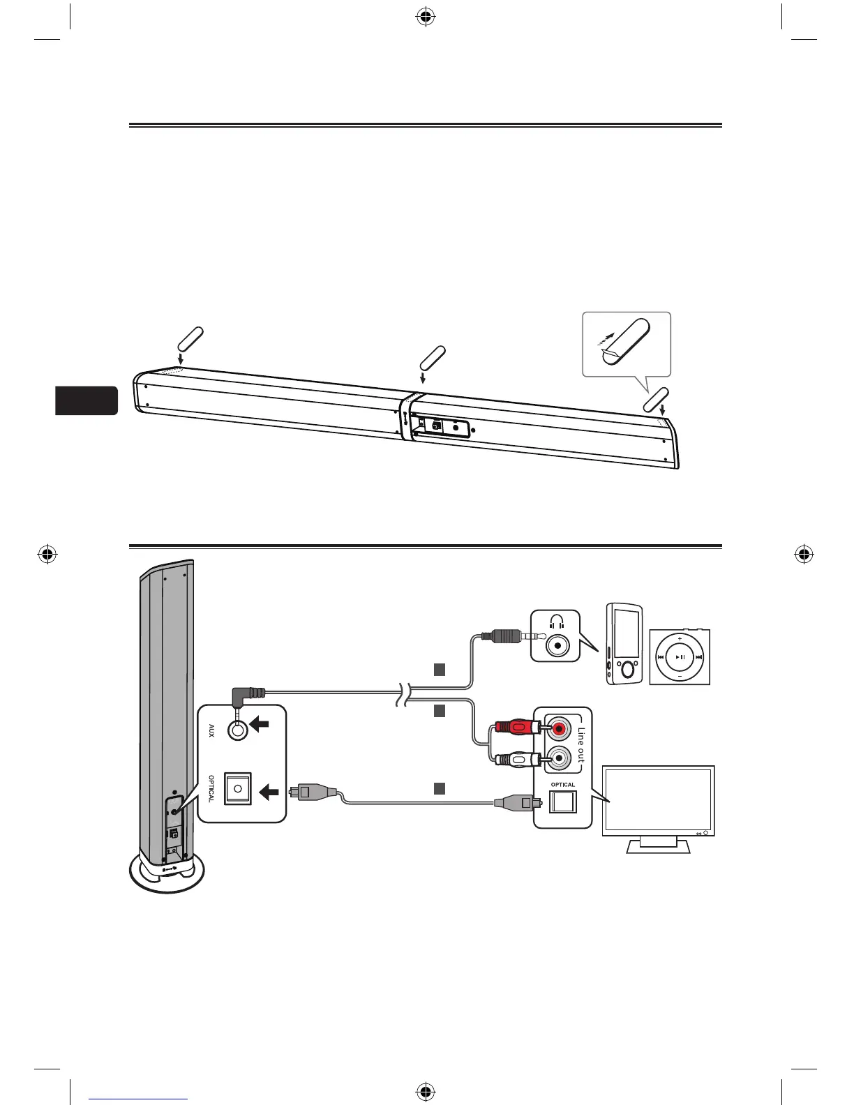 3. Attacher le pied en caoutchouc en dessous de l'unité comme montrée sur la figure ci-