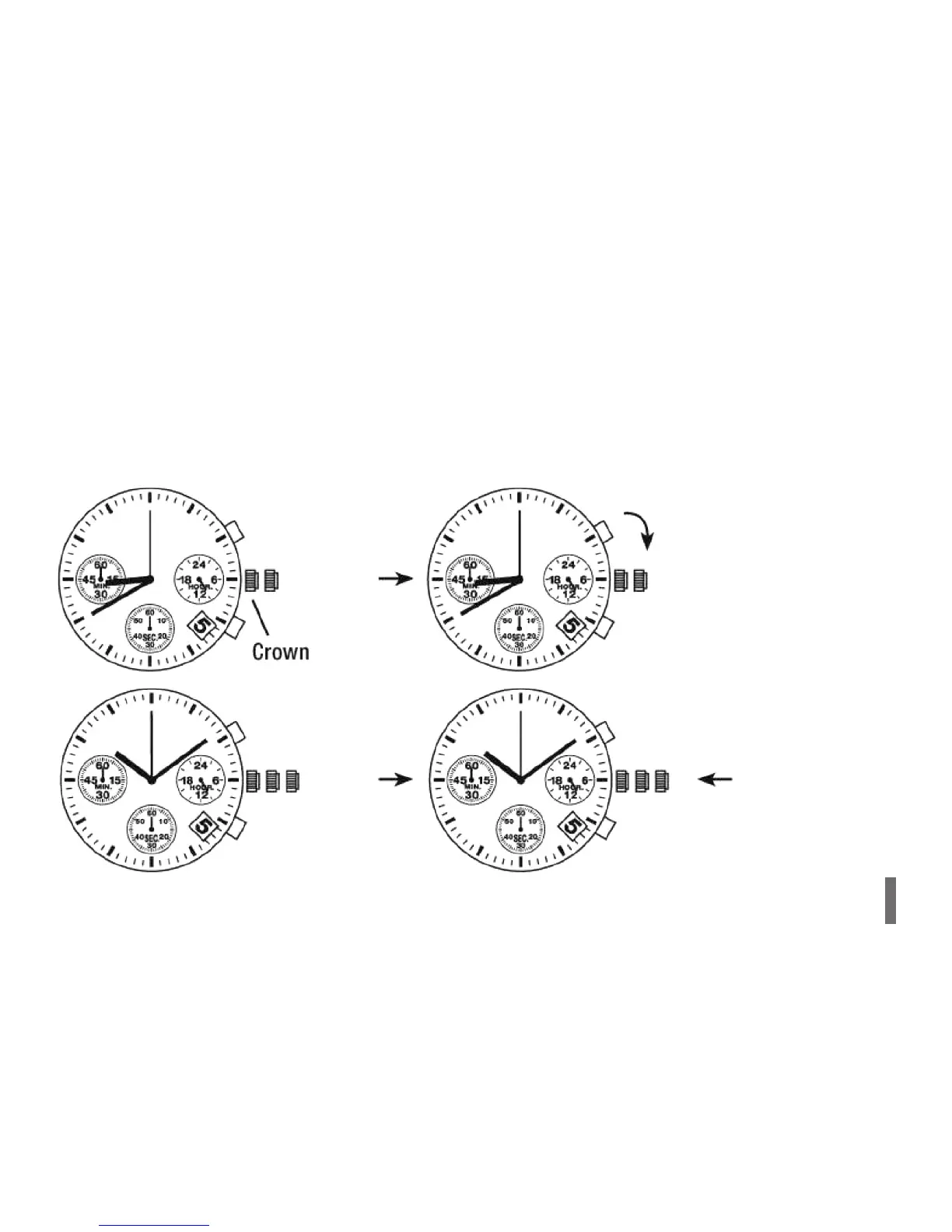 BEFORE SETTING THE TIME, PLEASE CHECK THAT THE CHRONOGRAPH