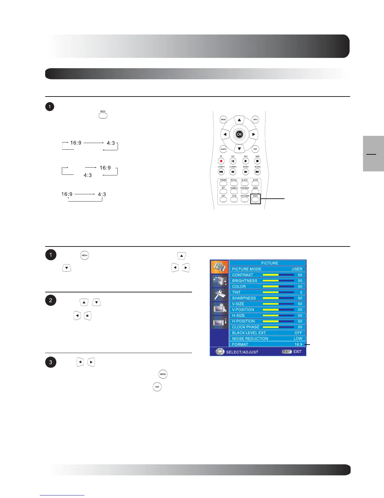 Under Component, PC and HDMI input modes, only 16:9 and 4:3 modes are available.