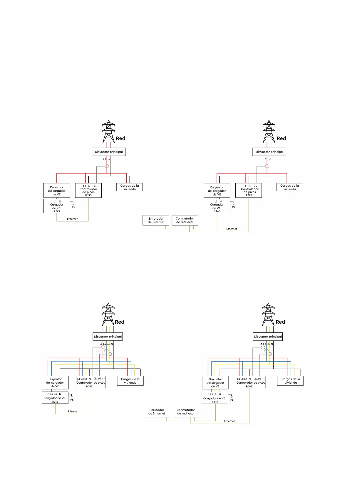 Comparación entre red local y directa (instalación monofásica)
