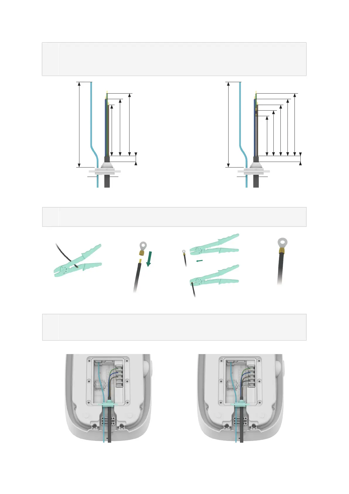 Prüfe die Kabeleinführungslänge und die Abisolierlänge gemäß den Vorgaben in Abb. 6.