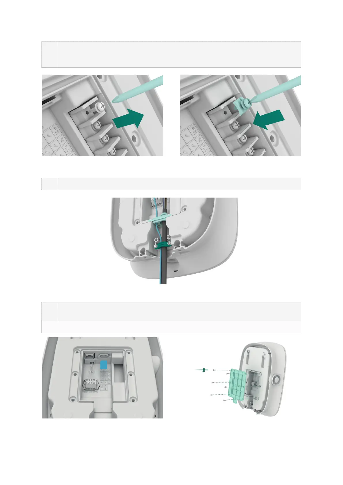 Klemmenleiste und setze die Schraubenplatte ein, um das Stromkabel anzuschließen