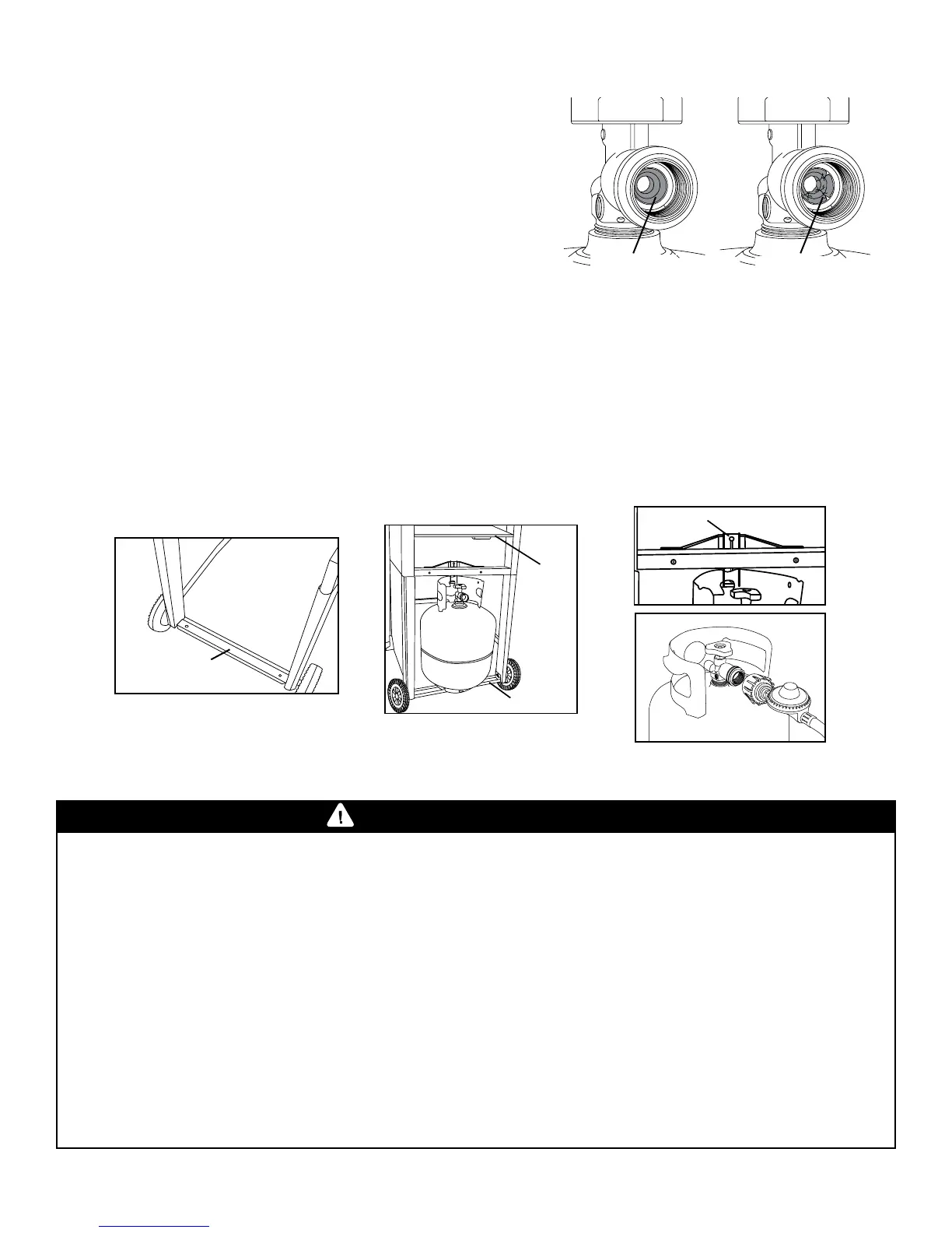 de la manguera de suministro. Antes de conectar el cilindro a la parrilla, lea y siga todas las