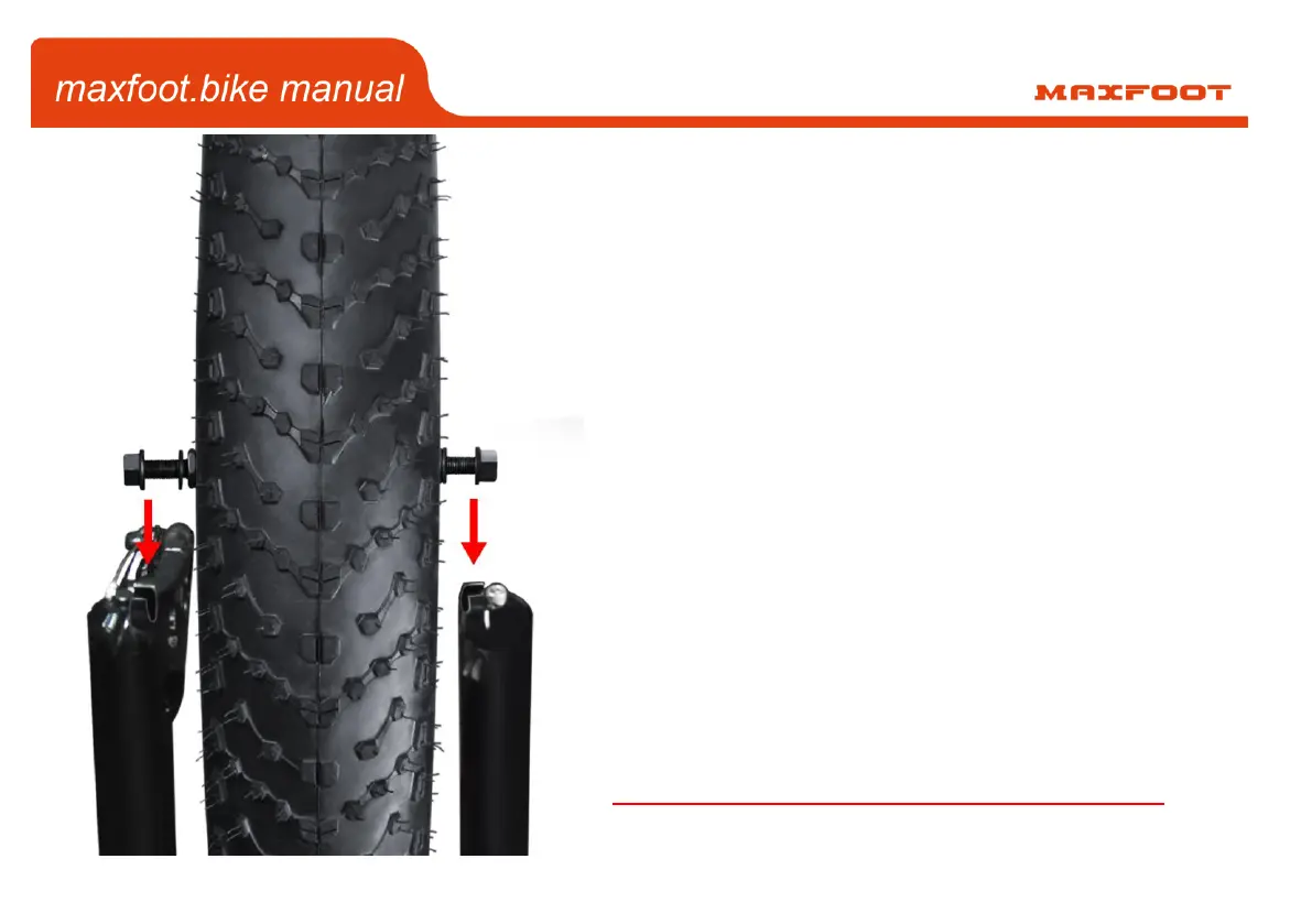 5, Twist the bolts to tight the front wheel and the fork together.