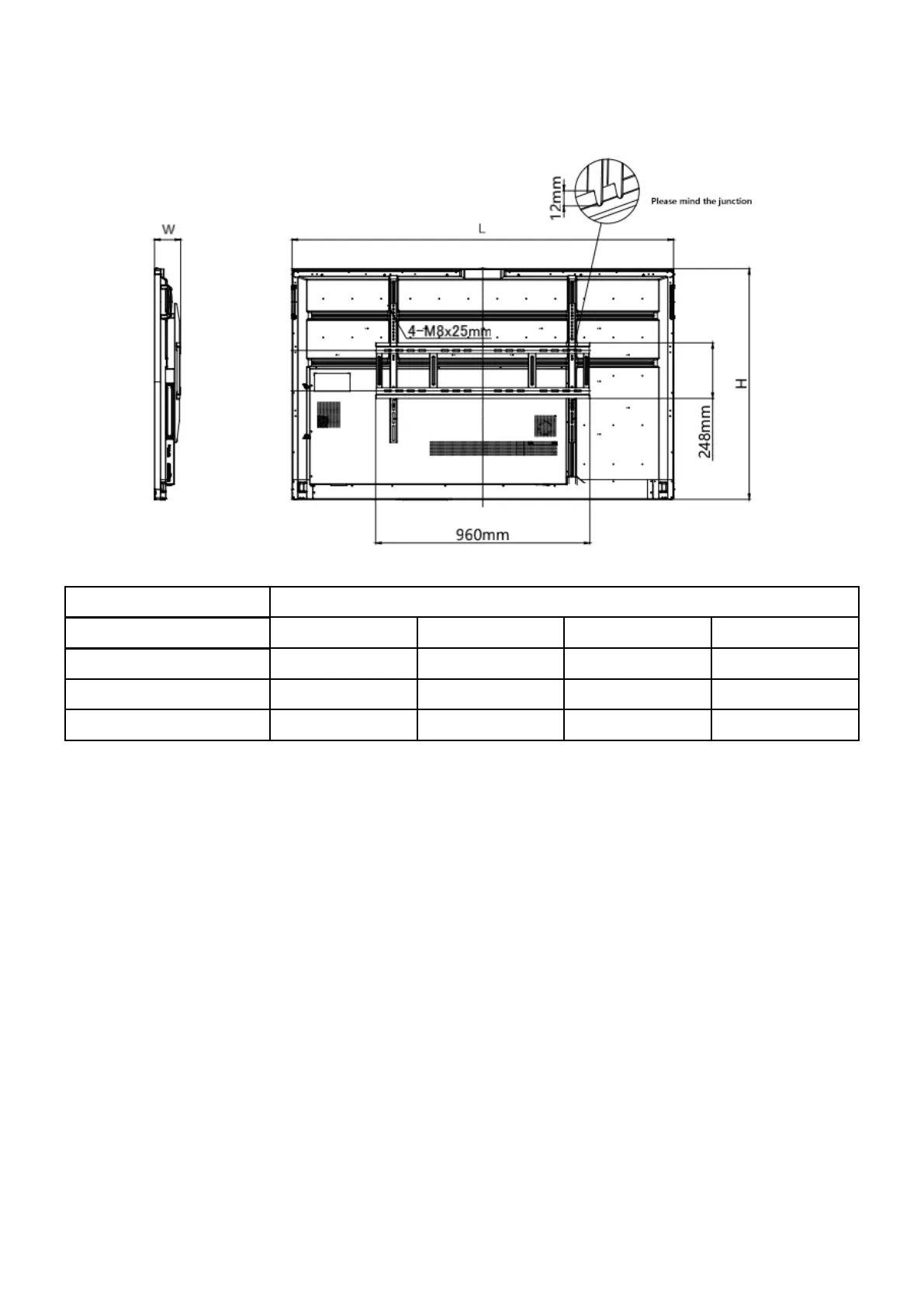 Dimension 55" 65" 75" 86"