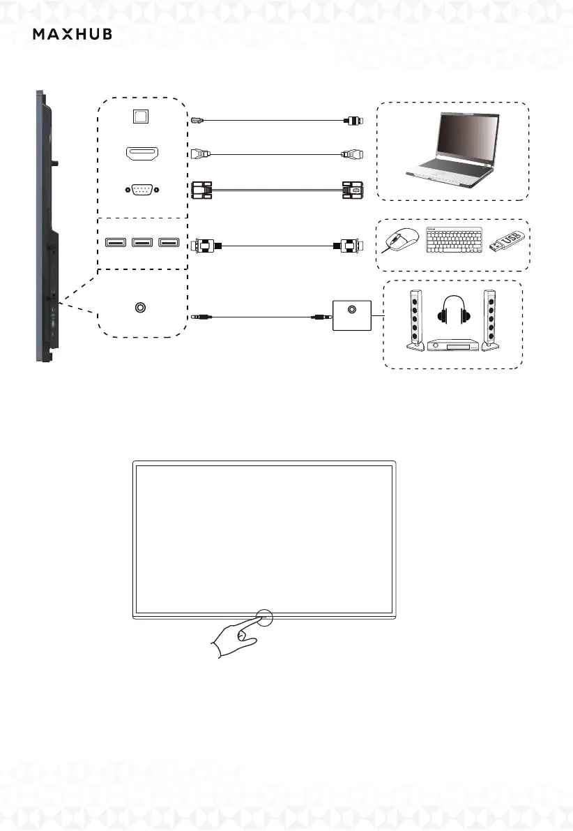 To start the MAXHUB V6, press the power key. Once the device is on, it is ready for use with