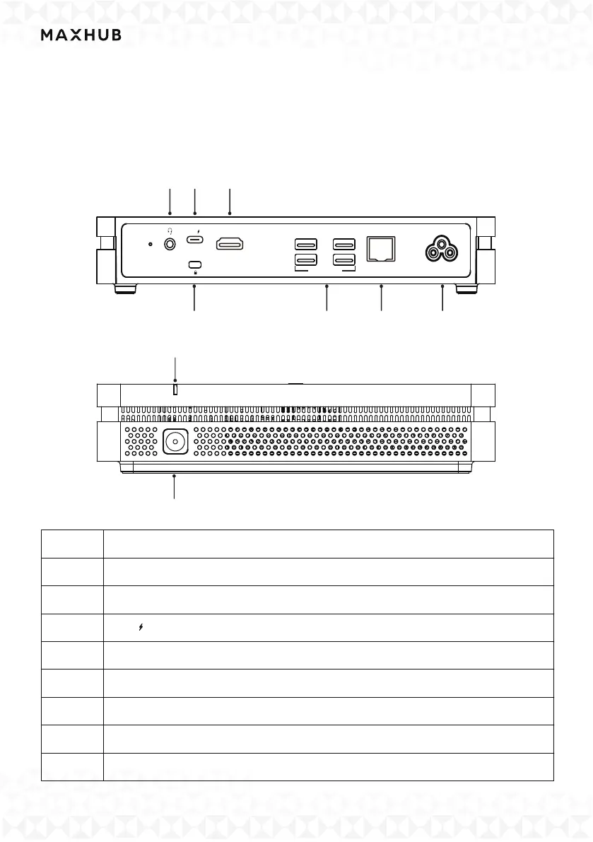 3.1 : Power delivery (MAX: 45W), USB3.0 data transmission, DP Out.