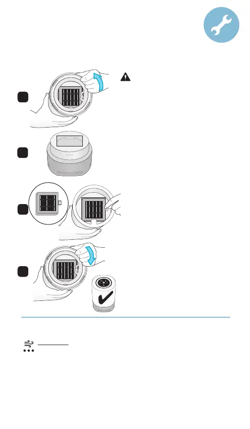 Hold air purifier upside down. Twist