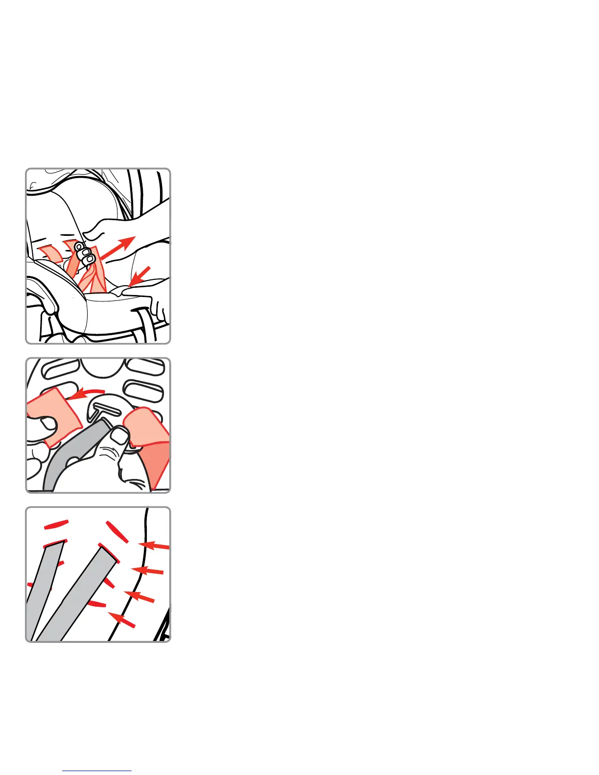 • From the front, pull harness straps out of the shell