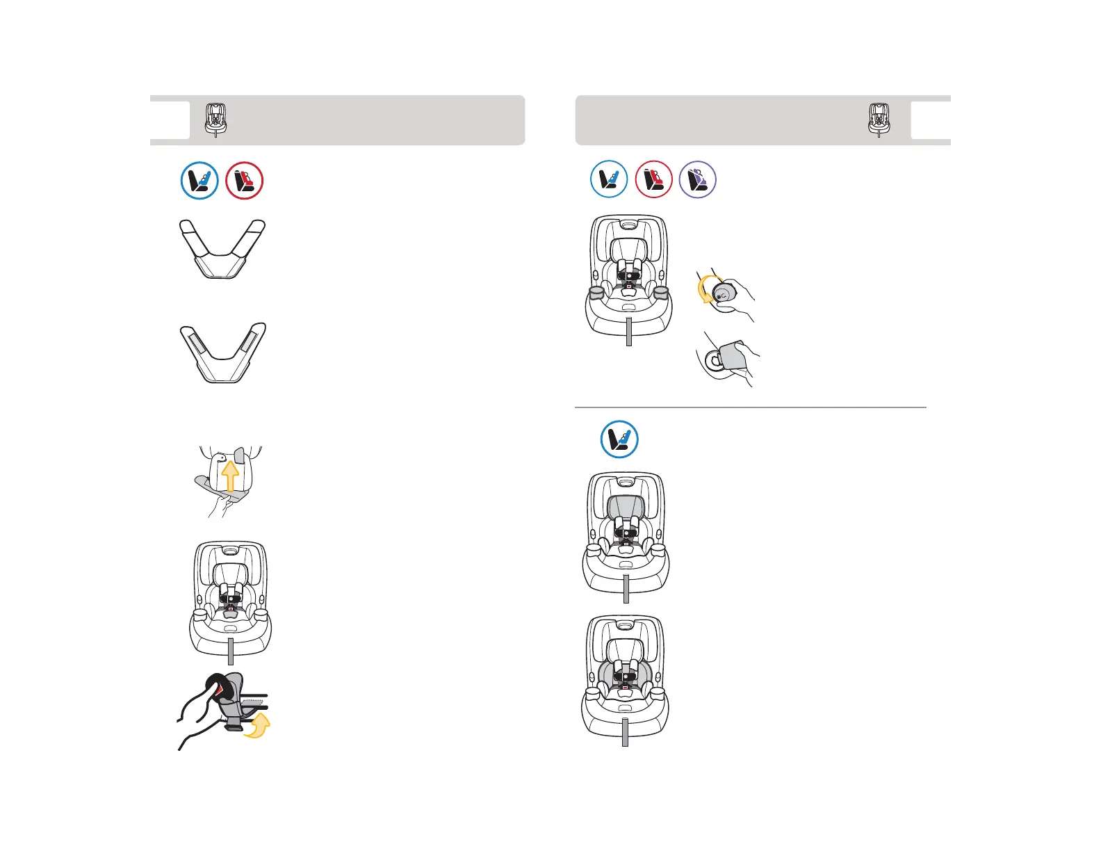 headrest pad. Place harness straps into covers.