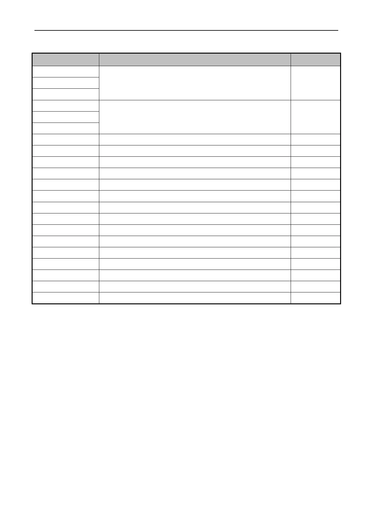 Quick reference table of alarm codes