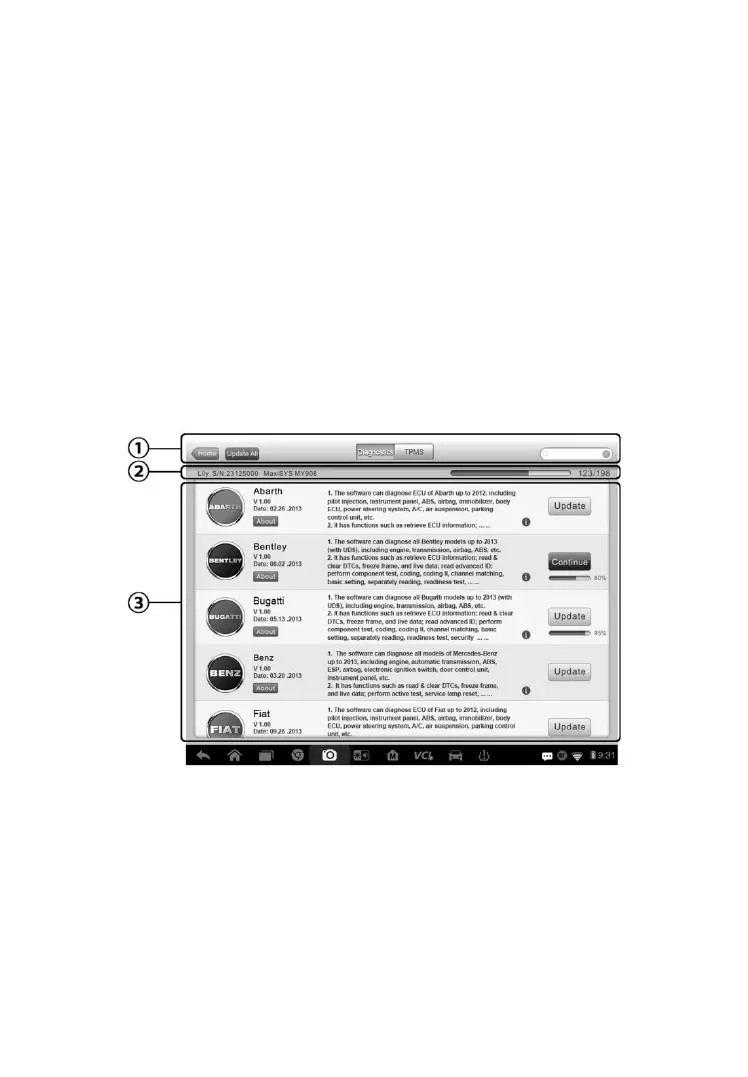 Diagnostics Tab – displays all available vehicle diagnostic software